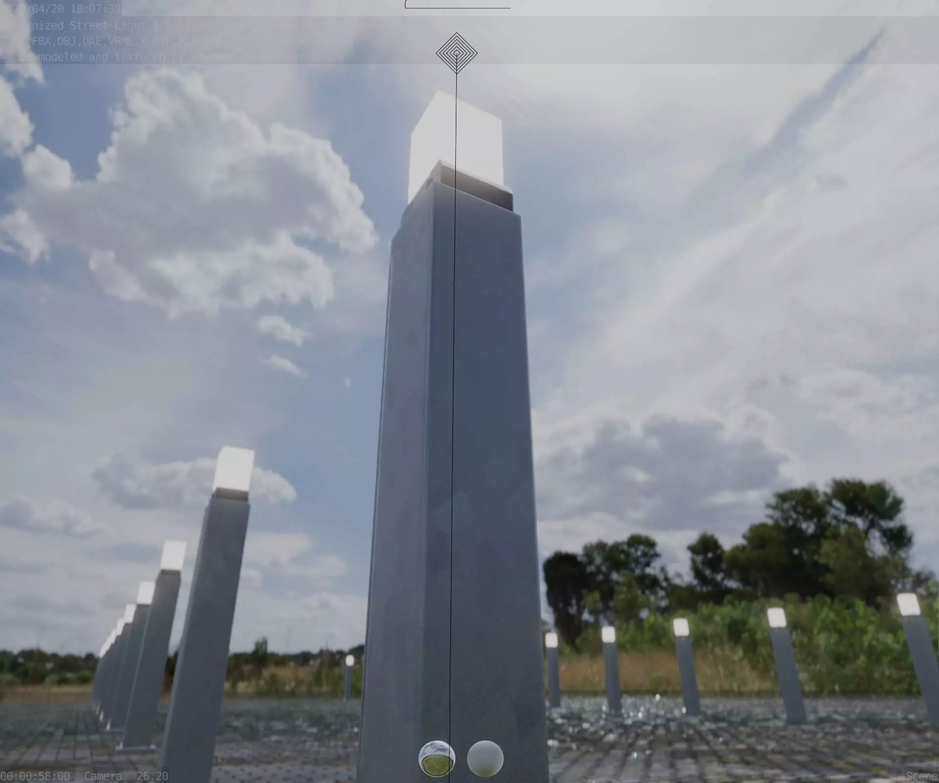 Here is street lamp number 8, a 900 mm high bollard with integrated light (the galvanized textured version 3).