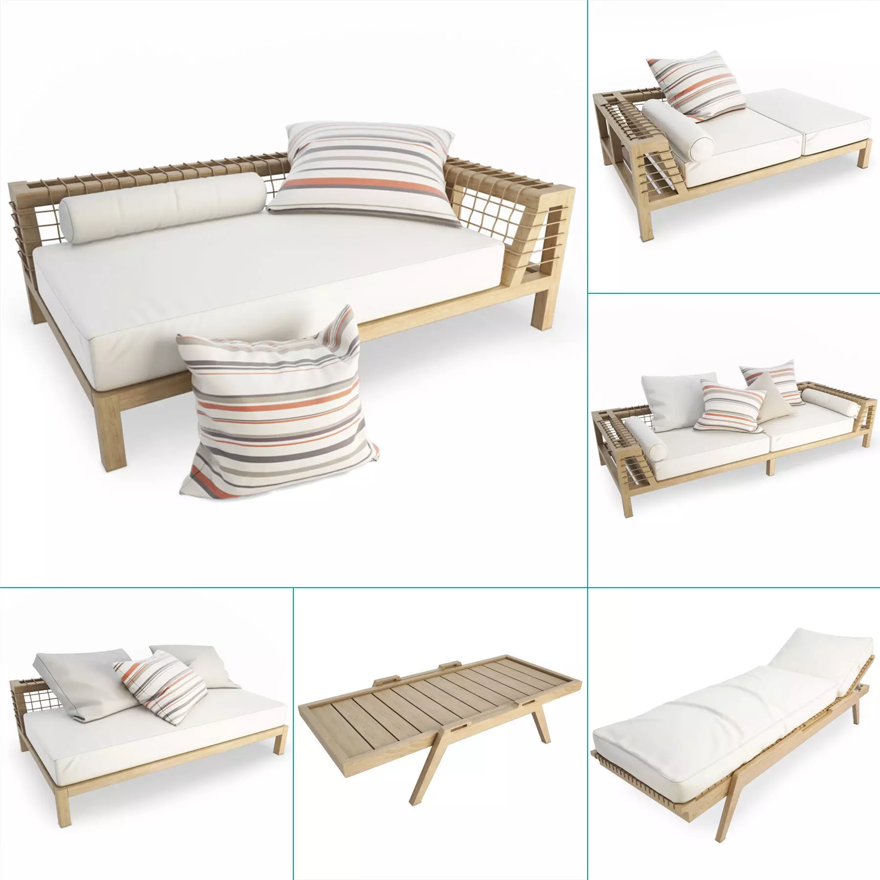 one sofa, two armchairs and one low table in braided wood to design your interior are included in the box Synthesis Collection 3d Models.
