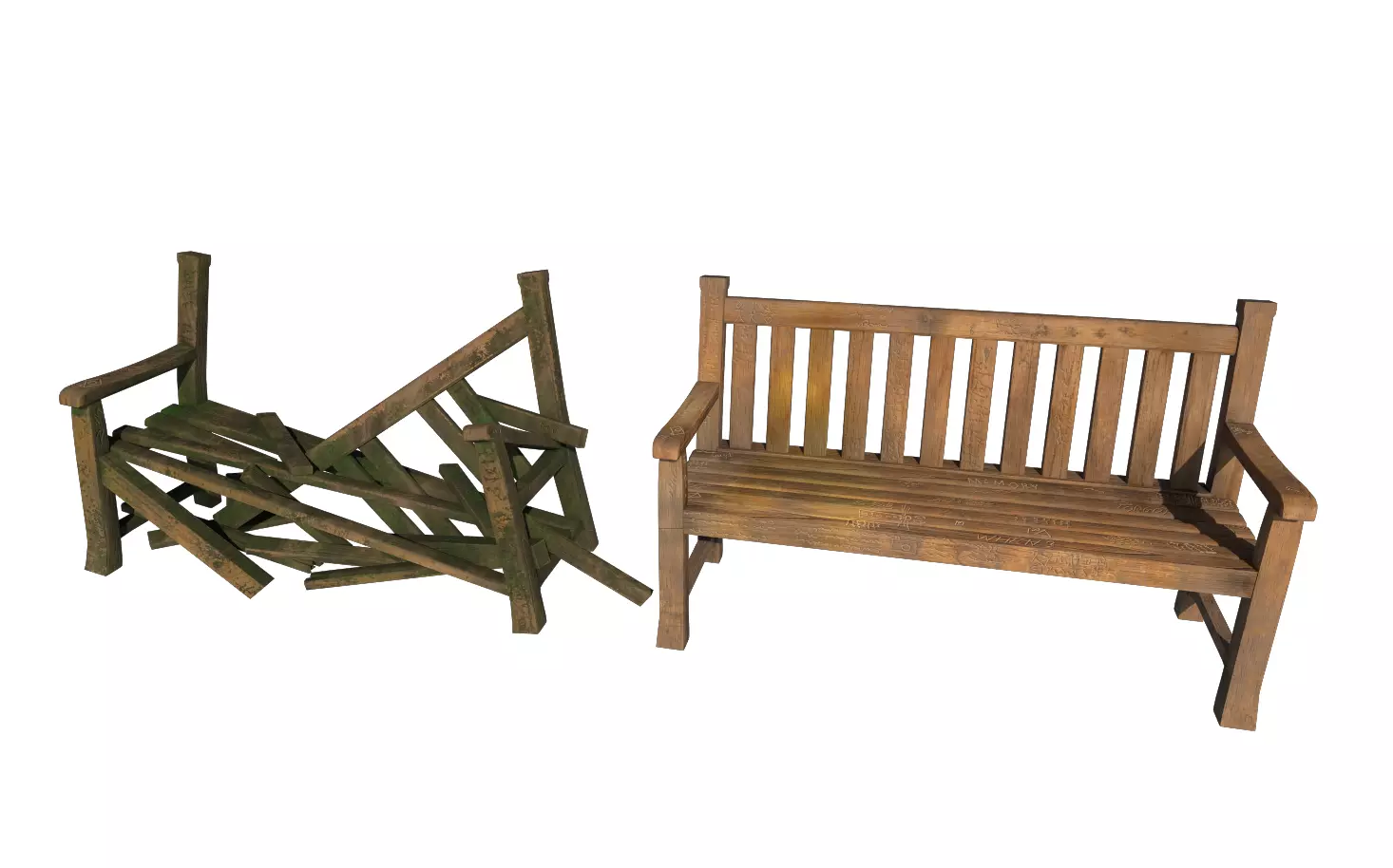 A low-poly wooden bench pack designed for real-time environments and games.The pack includes an intact wooden bench and a broken variant, allowing you to easily place functional, damaged, or abandoned benches in your scenes.