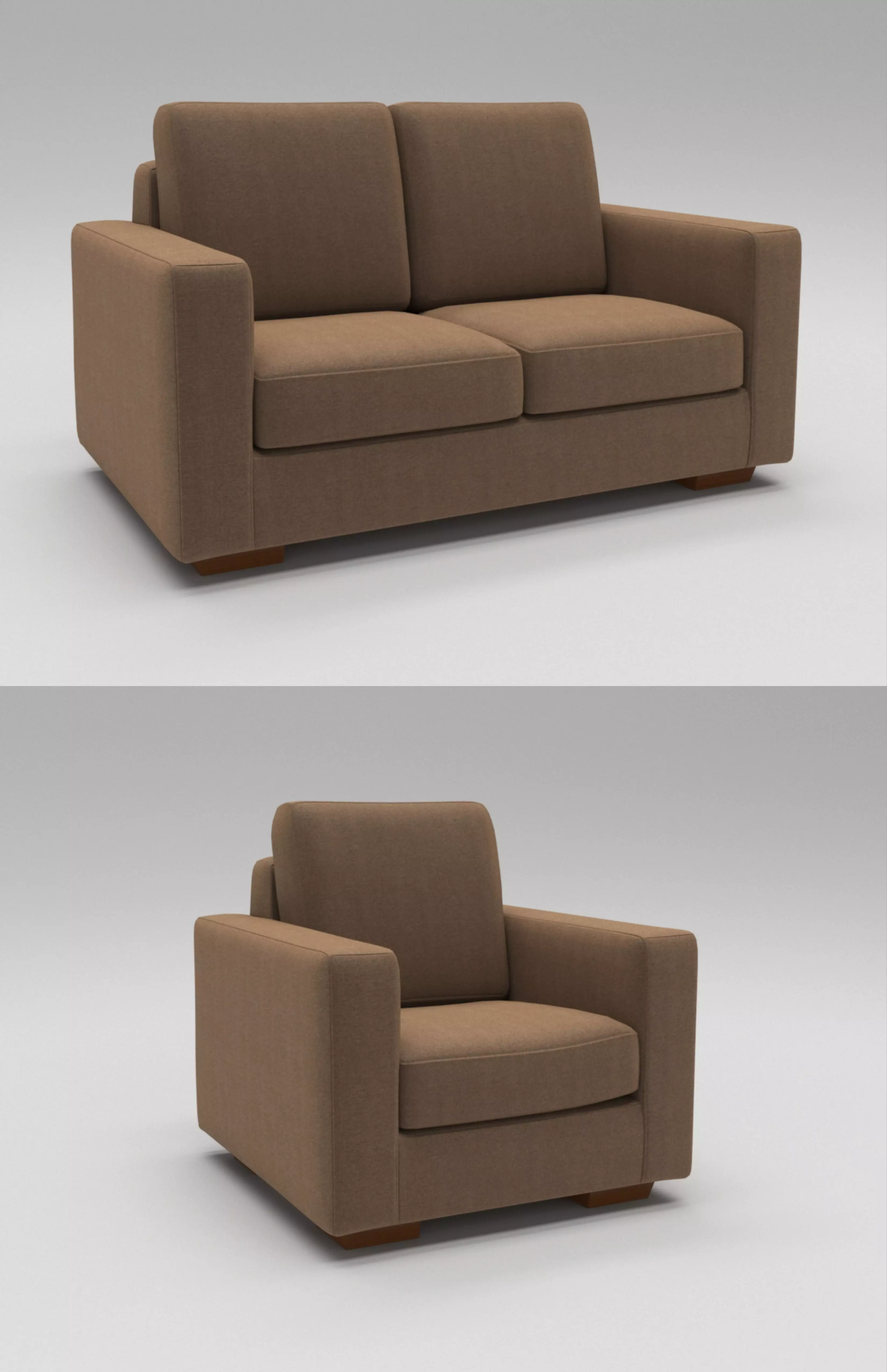 3D model of contemporary style single seating and double seating sofa.