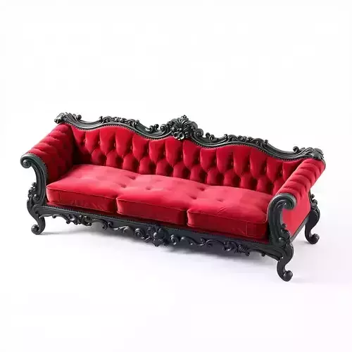 This exquisite 3D model represents a luxurious, ornate sofa, inspired by classic Baroque and Rococo design aesthetics. It features rich, crimson red velvet upholstery with intricate tufting, beautifully contrasted by a meticulously sculpted black wooden frame adorned with elaborate carvings and scrolls. This high-detail model is perfectly suited for a variety of demanding visual projects, including high-end architectural visualization, interior design renderings, virtual staging of luxury homes, and the creation of historically themed digital art or film scenes. Its elegant design also makes it ideal for showcasing upscale residential or commercial spaces, such as grand living rooms, hotel lobbies, or exclusive event venues. The model boasts clean topology and is ready for subdivision, ensuring smooth surfaces and exceptional detail when rendered up close. It is UV unwrapped and includes high-quality PBR (Physically Based Rendering) textures, guaranteeing a photorealistic appearance under various lighting conditions. While primarily optimized for static renderings, its clean structure can be adapted for real-time applications where detail is paramount. Common 3D file formats like GLB, OBJ, FBX, USD, DAE, and ABC are typically supported for seamless integration into most professional workflows.