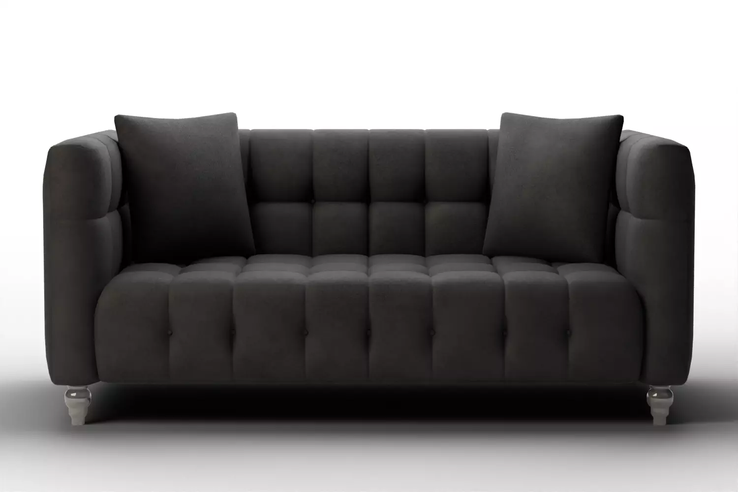 Infuse your boutique interiors and glam-style renders with the striking silhouette of the Bea Black Velvet Loveseat. This high-quality 3D model features a distinctive scalloped, channel-tufted backrest that pays homage to classic Art Deco aesthetics while maintaining a modern, compact footprint. Upholstered in a deep, high-contrast Black Velvet, this loveseat serves as a dramatic focal point for small living spaces, dressing rooms, or luxury hotel lobbies.