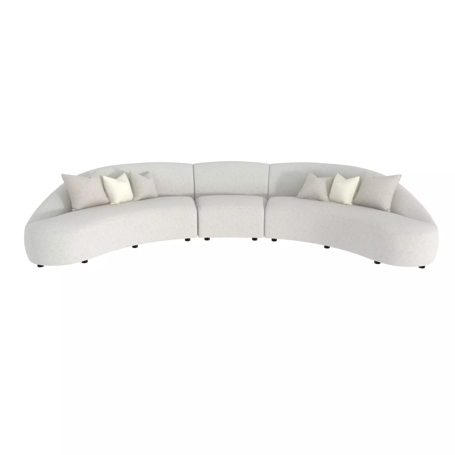 Streamlined sinuous curves make a sweeping statement on the Calder sectional. Comprised of loveseats and a center wedge chair that shape a crescent design, each piece showcases exquisite arcs and contours. The seat on every item flows to the floor, while the tight-back upholstery offers an effortless chic style.