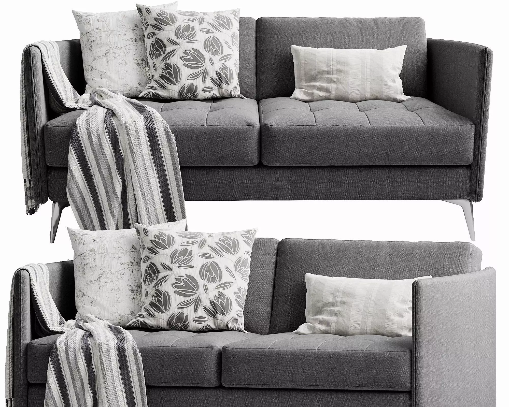 Boconcept Osaka 5Dimension 1670x875x770Units: mmPoly: 257157Vert: 256860Texture paths are strippedModels unwrapped manuallyLighting is not included3DsMax 2013 / OBJPreview rendered in CORONA 4 convert to Vray 4When using a model in max format, if necessary, enable the turbosmooth modifier.When using a model in obj format, add a turbosmooth modifier if necessary.For those who work in a VRay version lower than 3.1, be careful, in the materials in the BRDF section there is Microfaset GTR (GGX), if your version is older than 3.1, then the BRDF field will be empty. Choose Blinn, Phong or Ward - which is preferable for you.For Corona render, it is recommended to install a version of at least 1.5, since the glossiness of materials is configured with PBR in mind in mind.