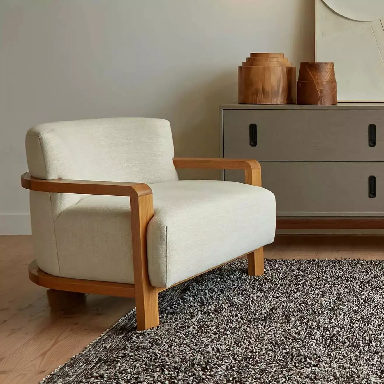 AboutThe Carrillo lounge chair features a curved solid wood frame and upholstered seating.