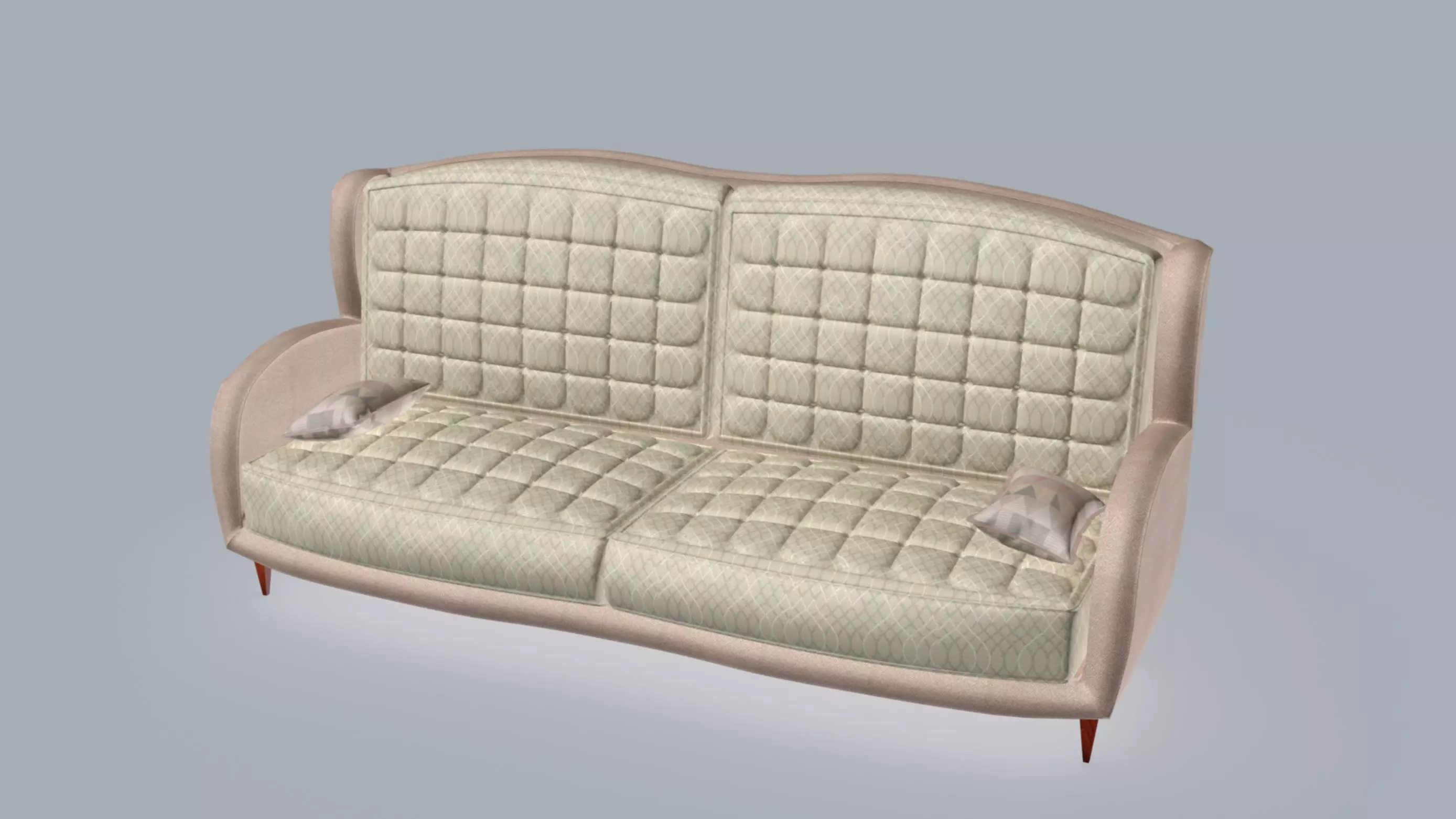 3D model of the Chesterfield Vintage Smooth Sofa modelled and rendered in 3ds.max 2016 and Mental Ray renderer. The model is high poly print-ready 3D quadmesh. It's elegant and modern designed made from pitch cotton and light bage and white stripes patternded cotton. The sofa has two pillows in pink and grey triangles patterned colour. The legs of the sofa are wooden. This model is suitable for all kinds of interior architectural 3D visualizations as well as for single product promotional and advertising short video presentations and animations. I recommand using this model in all kinds of interior architectural 3D visualizations and interior designs.