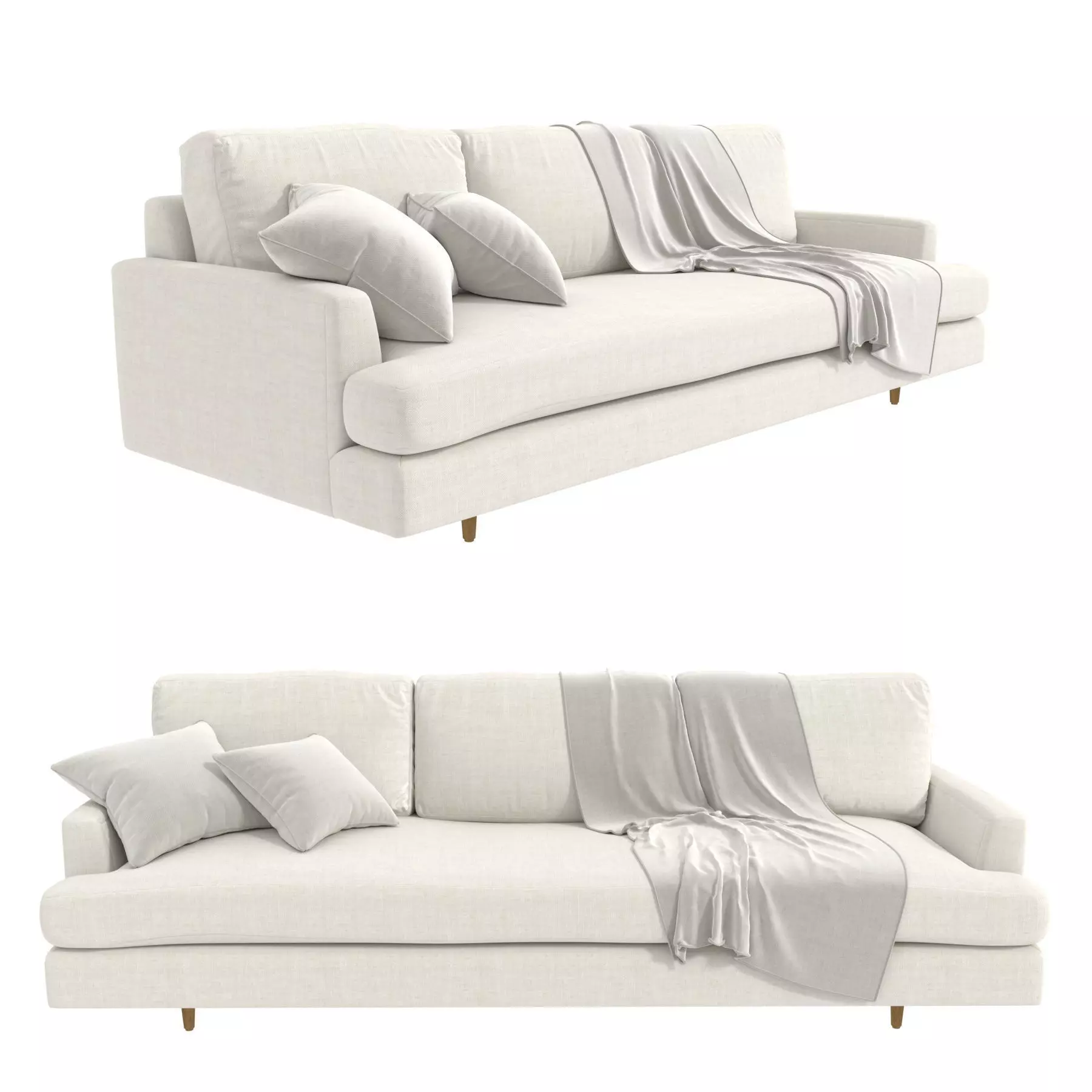 Beige three seat sofa, straight, wood legs deep inside floating look rounded big soft seat and back pillows cushionsthrow decorative grey DetailsAll Community sectionals are made to order and customizable. All our upholstery is shown with feather down fill and available in several options. For specific requests and capabilities please inquire.Overall Dimensions Shown99’’ W x 40’’ D x 30’’ HFabric OptionsCOM, COL or Community CollectionCOM Required16-18 YDWood OptionsBlackened, Brown Wash, Natural, Grey Wash and White WashArm Height26''Seat Height19''