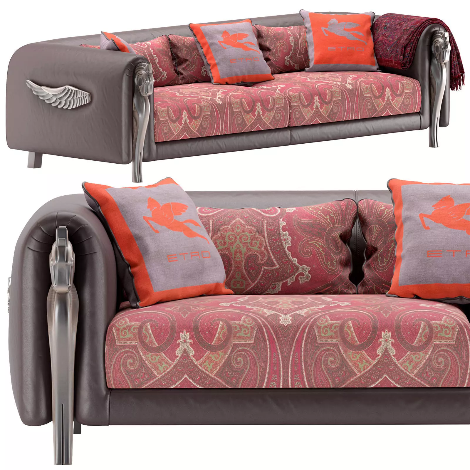 Corinto Sofa. Brand: Etro Home Interiors. Link: https://etrohomeinteriors.jumbogroup.it/en/products/corintoDimensions:Width: 2800 mmHeight: 750 mmDepth: 1100 mmUnits: millimetersFormats: 3Ds Max 2012, 2015 (Vray), 3Ds Max 2013, 2015(Corona), OBJXForm:YesUnwrap uvw: YesTextures: YesMaterial library Corona, Vray: YesRender: Corona, VrayReady to renderImportant: the TurboSmooth modifier must be applied to import objects (except for pillows and plaid).Those who work in V-Ray versions lower than 3.1, be careful, in the materials in the BRDF section there is Microfaset GTR ( GGX ), if your version is older than 3.1, then the BRDF field will be empty. Choose Blinn, Phong or Ward - whatever suits you best." If the CORONA version is higher than 1.4: “For Corona render, it is recommended to set the version to at least 1.5, since the glossiness of materials is adjusted with PBR in mind.