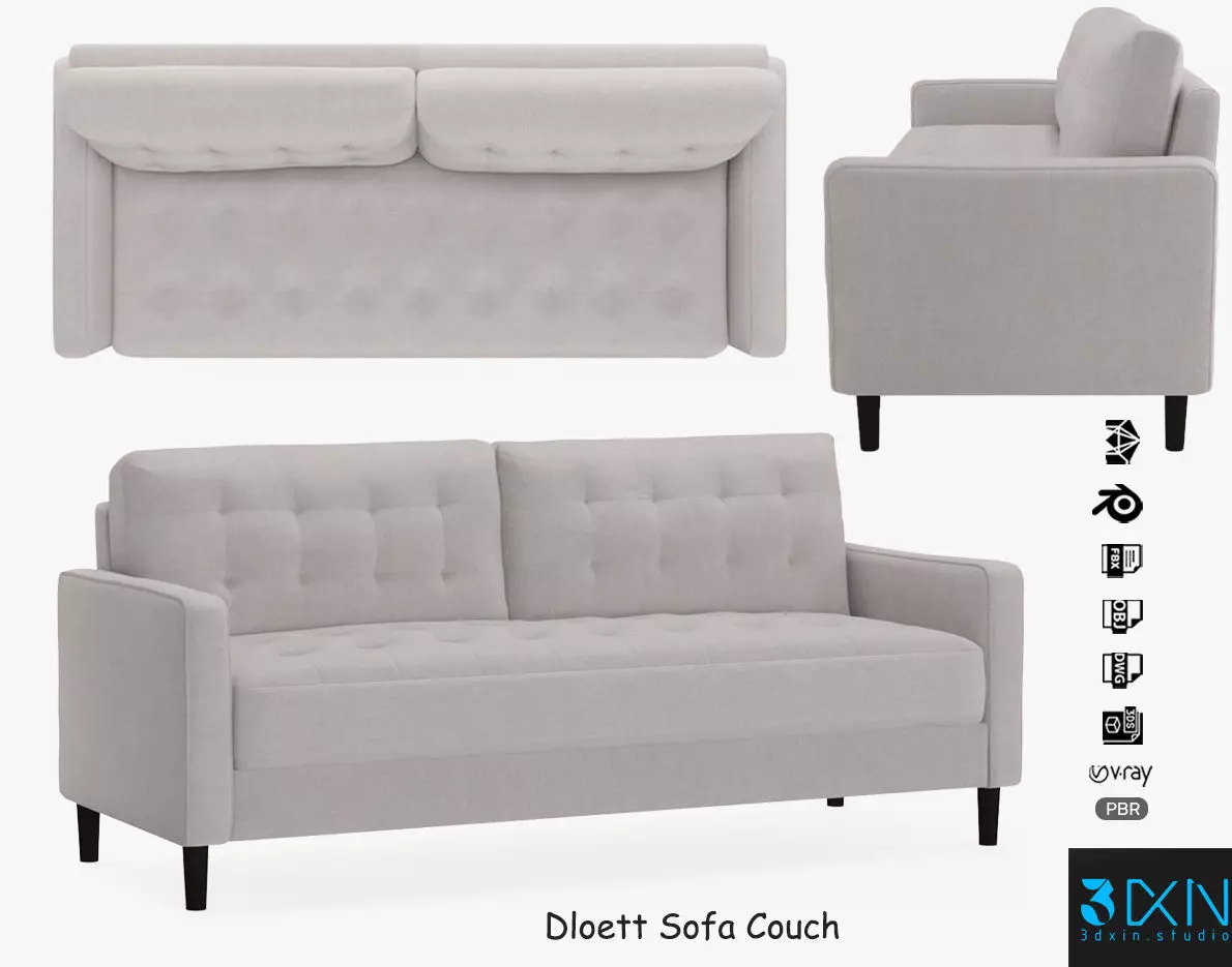Dloett Sofa Couch is a high quality, photo realistic 3d model that will enhance detail and realism to any of your rendering projects. The model has a fully textured, detailed design that allows for close-up renders, and was modeled in 3ds Max 2018 also has 3ds Max 2015 version and rendered with V-Ray. Renders have no post-processing.