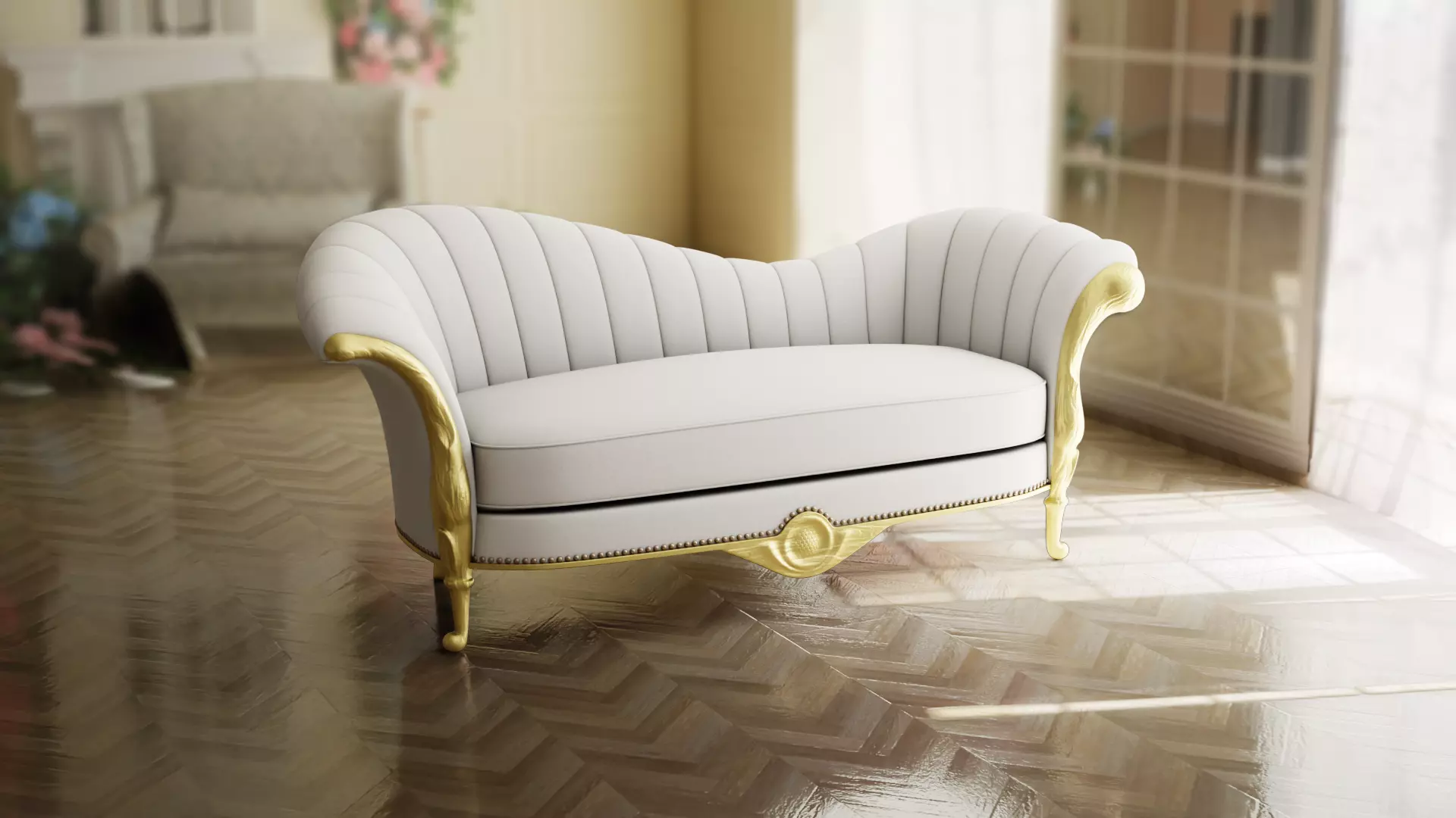 Indulge in luxury with this chaise lounge sofa. The seat is upholstered in a sumptuous fabrics, creating an opulent and glamorous look. The armrests are gracefully curved, providing an elegant resting place. The backrest pillows are filled with plush foam and feature tufting, adding a touch of sophistication. Luxurious embroidered legs , adding a sleek and contemporary element. With its extravagant design and fabric upholstery, this chaise lounge sofa is a statement piece that adds elegance to any modern or vintage-inspired interior.