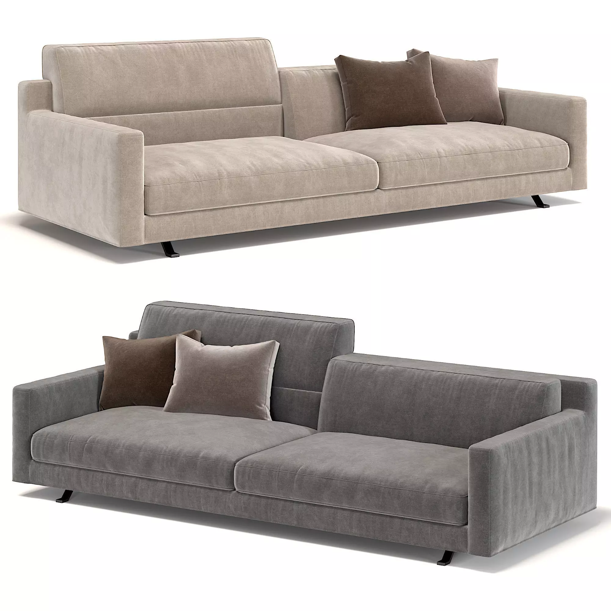 Discreet and modest, Tiberio chooses a clean timeless aesthetic. The unique volume for back and armrests placed at the same height welcomes the soft cushions for a proposal which is able to fit every furnishing context. Available in the two- and three-seater versions and in sectional elements such as central, terminal, standard and asymmetrical corners, dormeuse, chaise longue and poufs, which could be mixed freely to create personalized compositions, from the easier and more linear ones to big configurations complex in the progression. The chaise loungue breaks the rigorous geometrical plan with a back placed at three quarter of the seat, conceived also to be used as a single element, to furnish curled up relax areas.