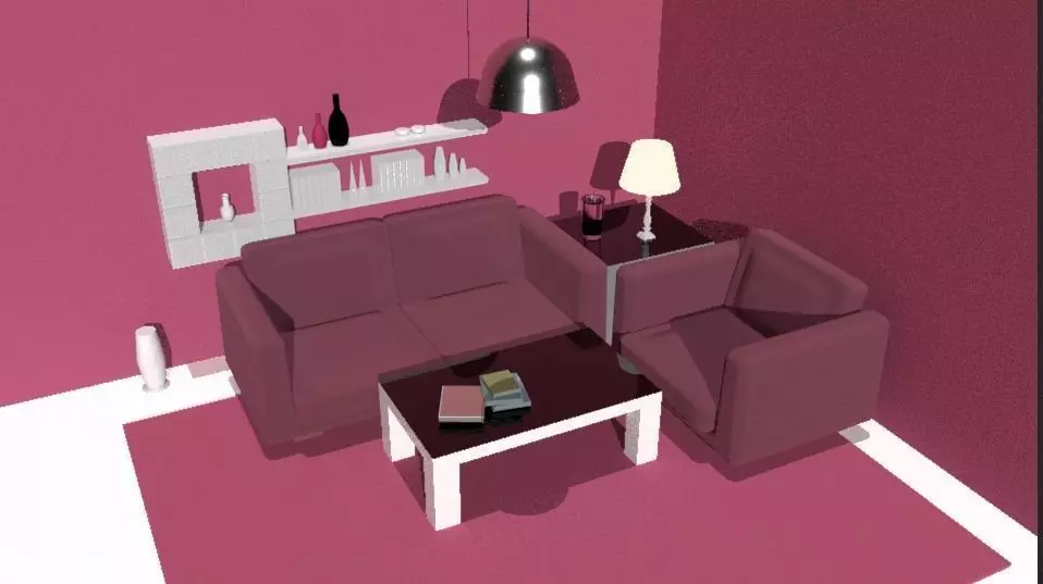 The model has material settings that define how surfaces look (color, shine, transparency, etc.).