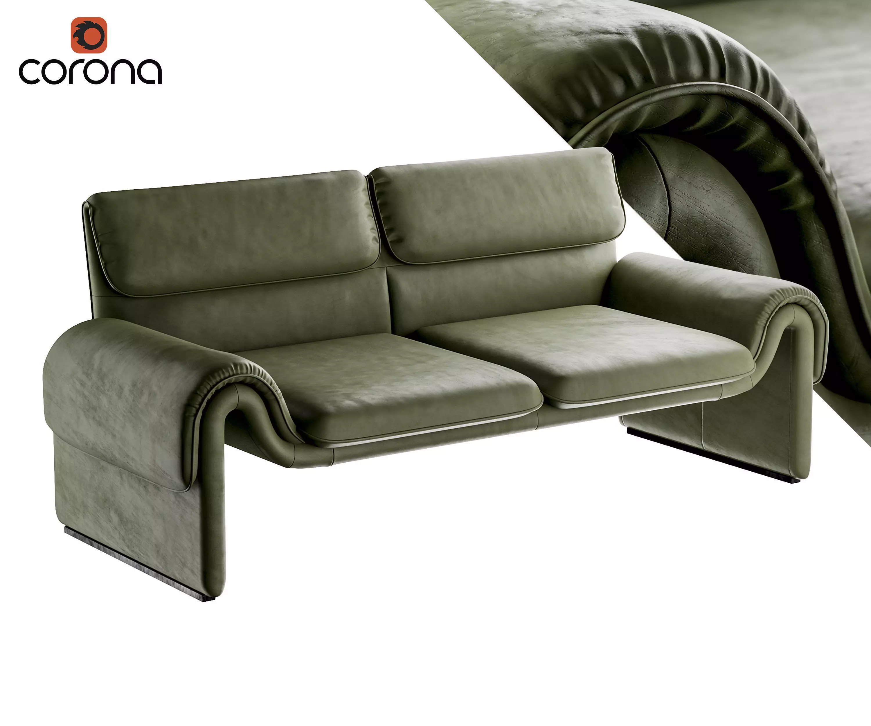 Leather sofa with bend armrests 3D model