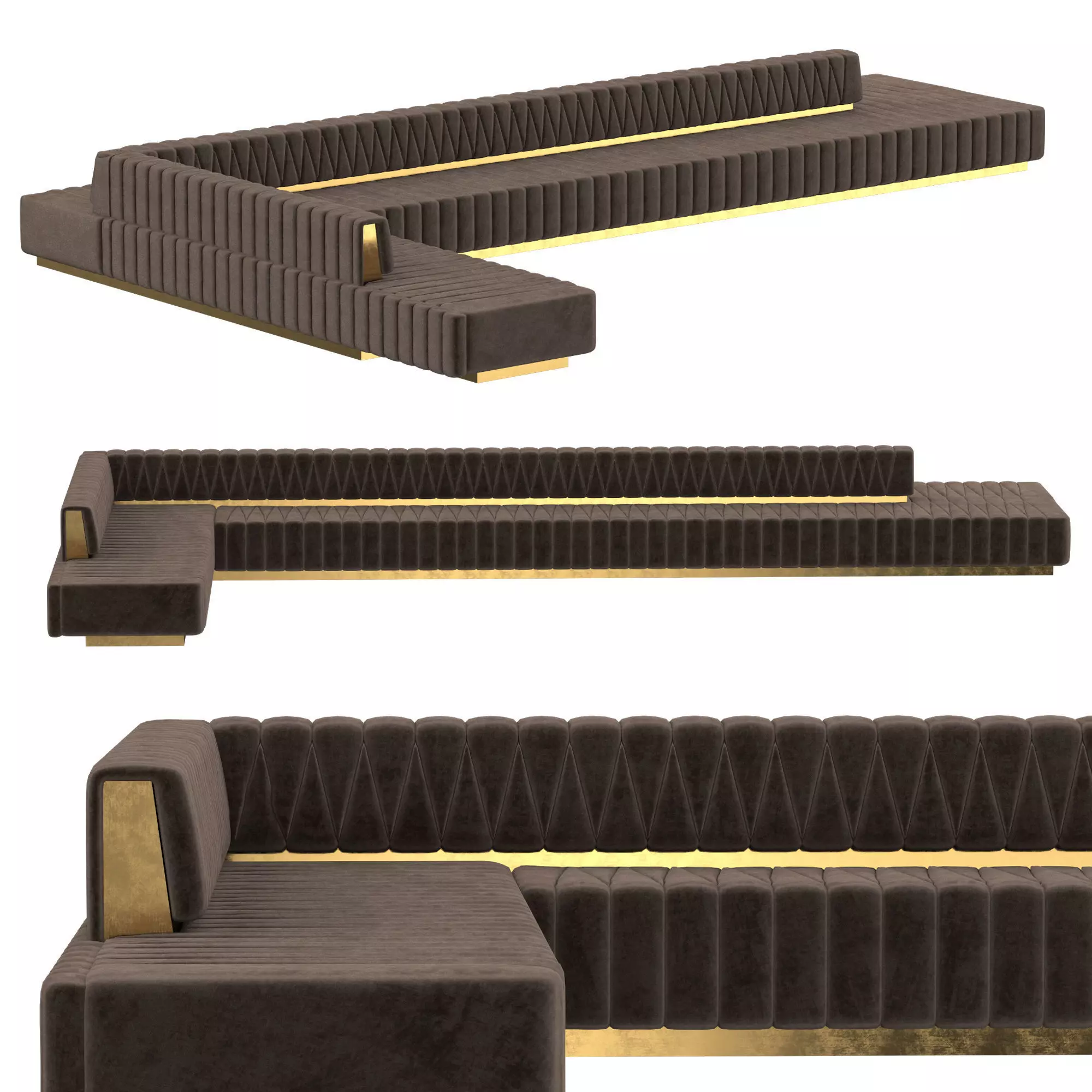 Name: Lobby sofa LType: modelFormat: 3Ds Max 2013Export: FBX, OBJ, 3DS, MATRender: VRay (3.x), Corona (3)Polys: 145888Verts: 146565Matclasses: VRayMtl,VRayBlendMtl,CoronaLayeredMtl,CoronaMtlUnits: MillimetersDimension: 5658.7 x 3491.99 x 655.76Preset: FULL CUSTOMDate: 2023.7.8Viruses: Clean, tested by PruneScene!Preview: YesTags: sofa, lobby, hall, modular, velveteen, velor, bronze, for a restaurant, hotel, bistro, bar, cafe