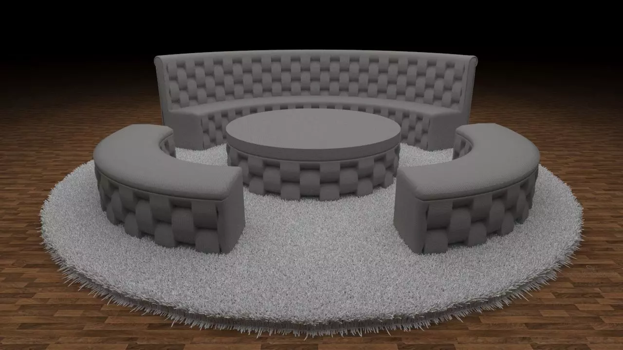 The model has material settings that define how surfaces look (color, shine, transparency, etc.).