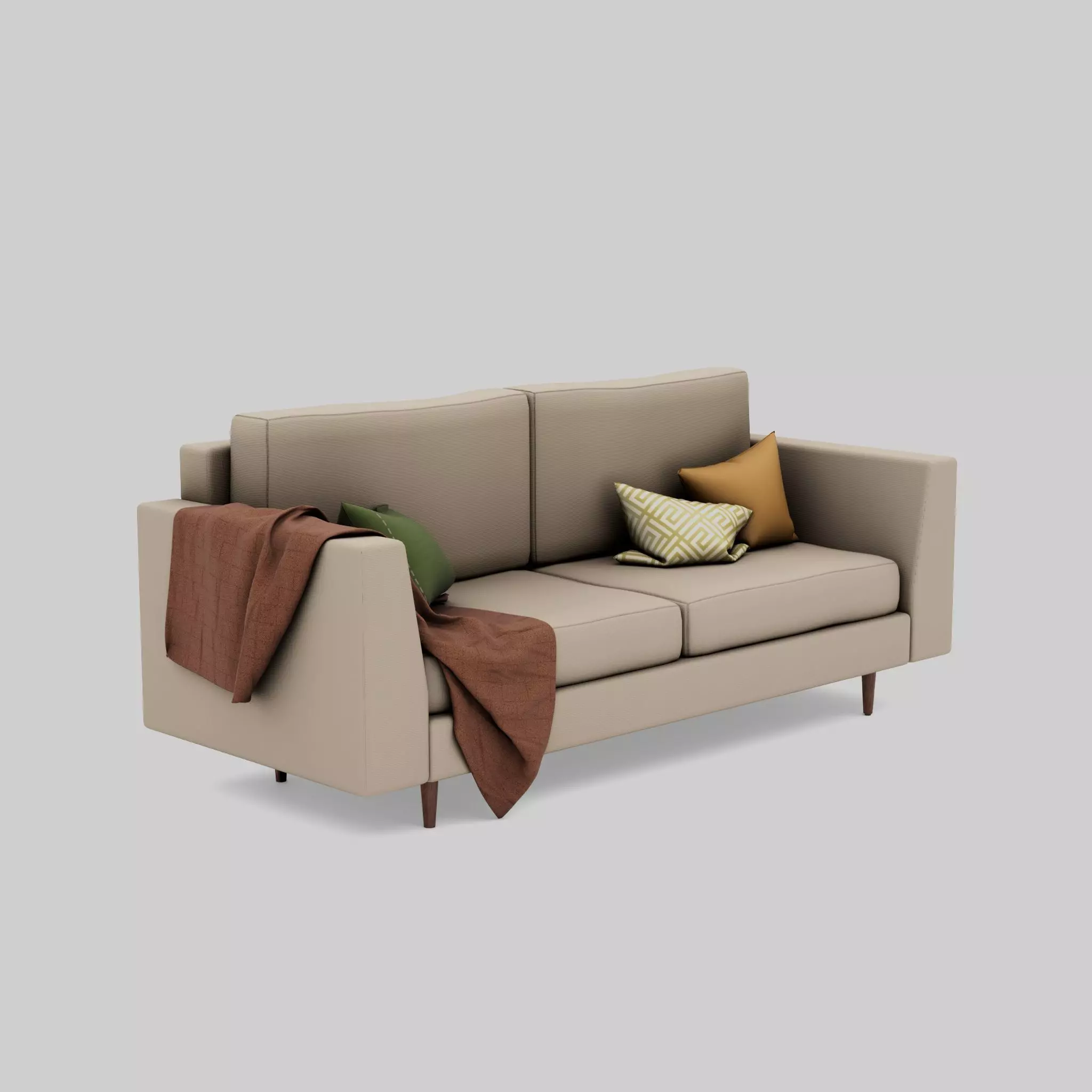 Modern 2-Seater Sofa with Decorative Pillows and Throw Blanket - PBR 3D Model