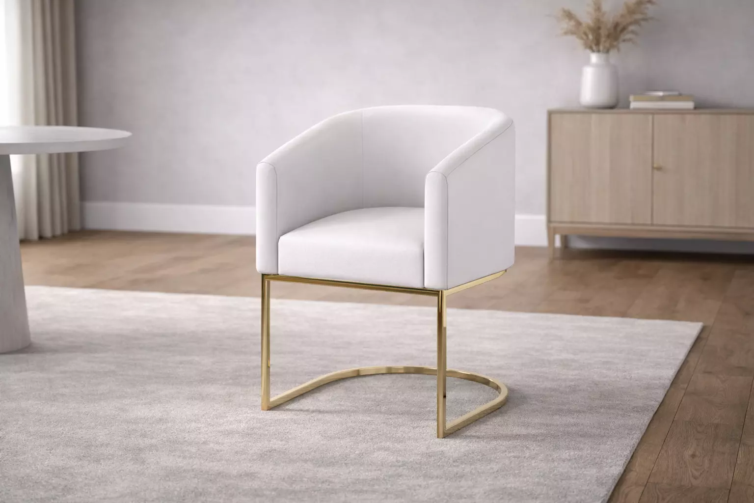 Enhance your interior renders with this professionally crafted Modern White Cantilever Armchair by MorisonDesign. Featuring a sleek, rounded white upholstered seat and an elegant C-shaped gold metallic base, this asset perfectly blends minimalist form with a touch of luxury. Optimized for both high-end architectural visualizations and real-time game engines.