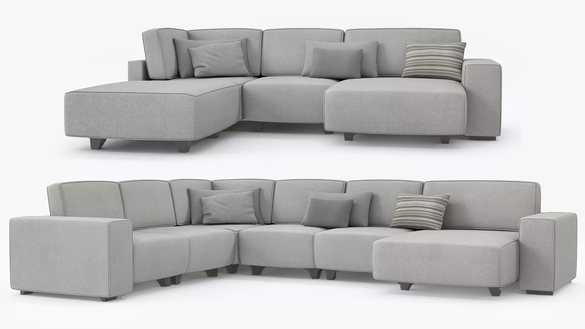 Low poly modular Chaise Longue Sofa to use in any project which is important the detail and reduced number of polygons (32K average in the example with pillows). DescriptionThe Chaise Longue Sofa contains 7 different assets (5 couch and 2 pillows) that could be used to build a modular couch. Each assets is unwrapped and overlaping in order to take advantage of using only one material. Centered with real measures and all made with quads. The pillows are divided in 2 options (pillow_A and pillow_B).