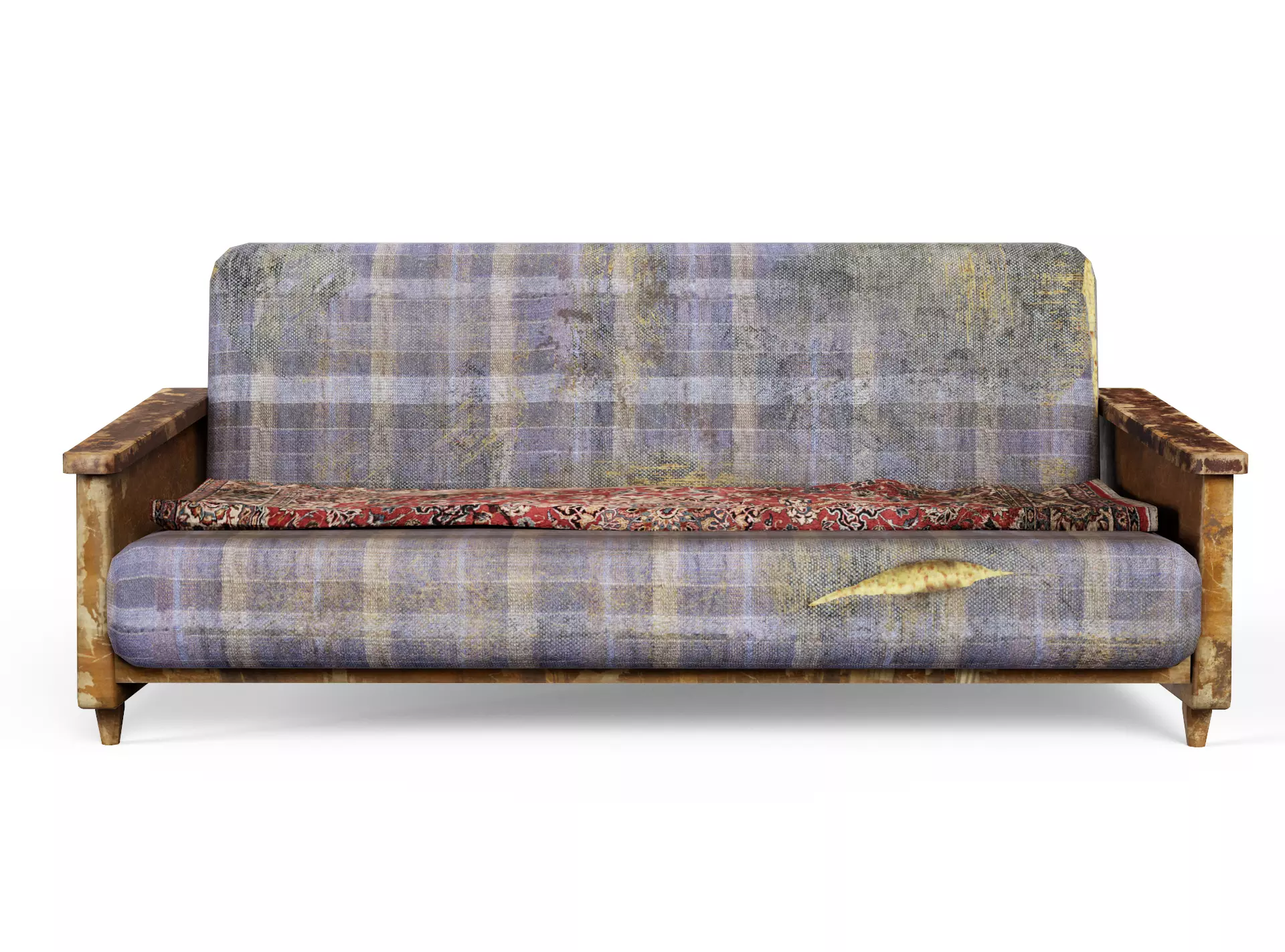 old vintage used dirty retro clothed couch with carpet da1 Low-poly 3D model