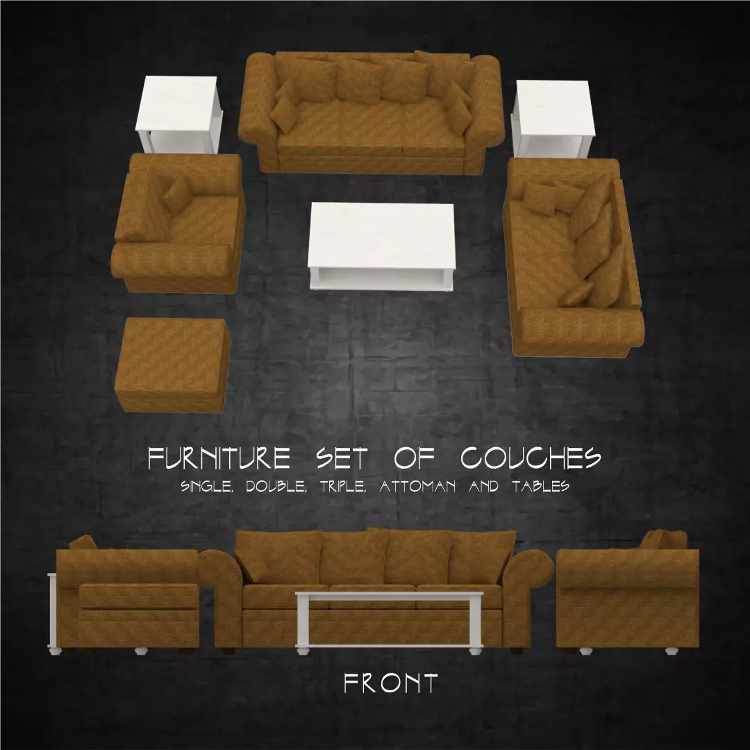 Sofa and tables furniture set multiple sizes architectural