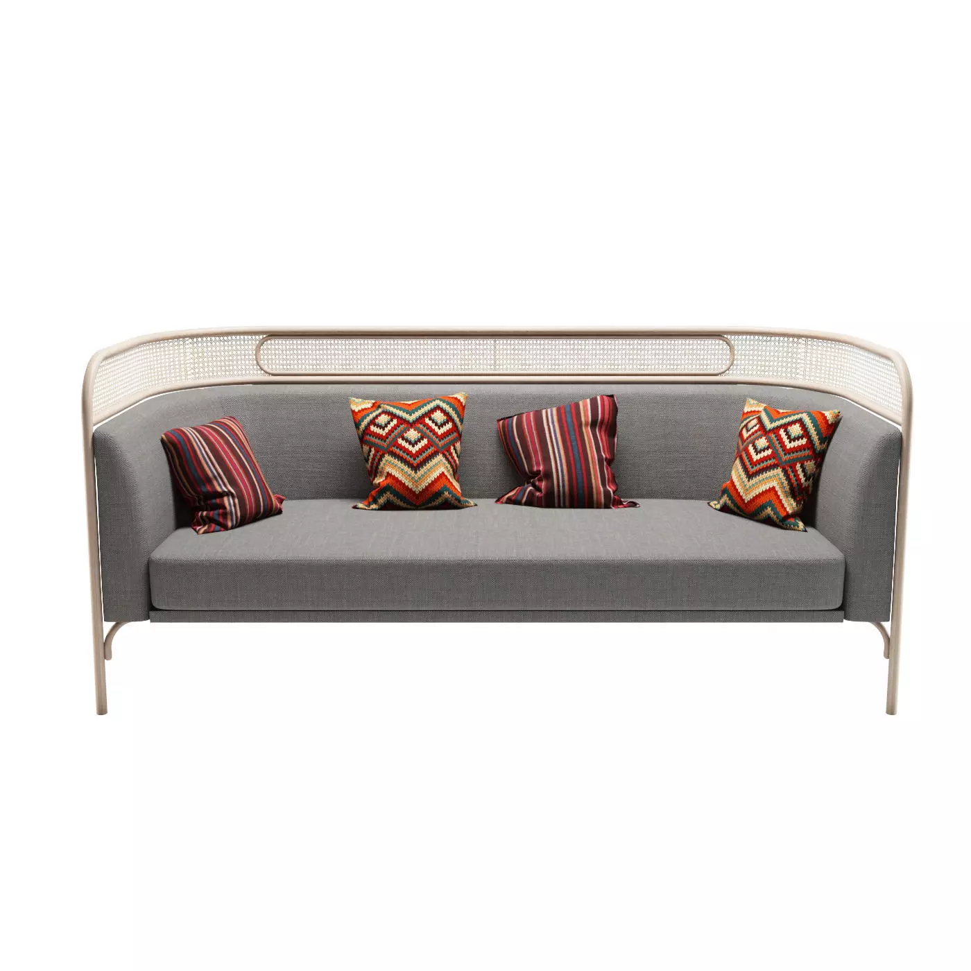 The upholstered seat collection Wiener GTV Design offers a new comfort idea by GamFratesi, the duo of Italian-Danish designers, composed of Stine Gam and Enrico Fratesi. TARGA is a family consisting of an elegant two-seater sofa and a small armchair, perfect elements for professional spaces intended for more intimate social relations and gathered, as well as for residential environments with unconventional personality. All elements of the brand's tradition combine to define the profile of the project: the arched beech structure supports the large cushion of the seat and the padded backrest which ends with a rim made of Vienna straw where is placed the element in ellipse, the plate (targa), which gives its name to the project.