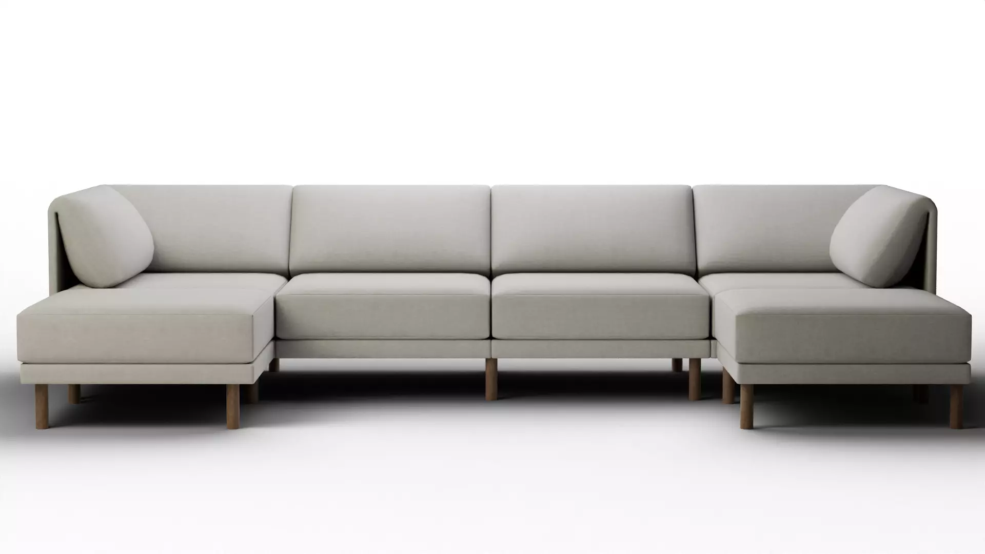 A 3D model of The Range Piece Sectional Double Lounge in Stone Gray (by Burrow) is a masterclass in modular versatility. In a 3D environment, the Double Lounge configuration is unique because it features two chaise-like extensions, creating a symmetrical U-shape or a wide double-pit lounging area.