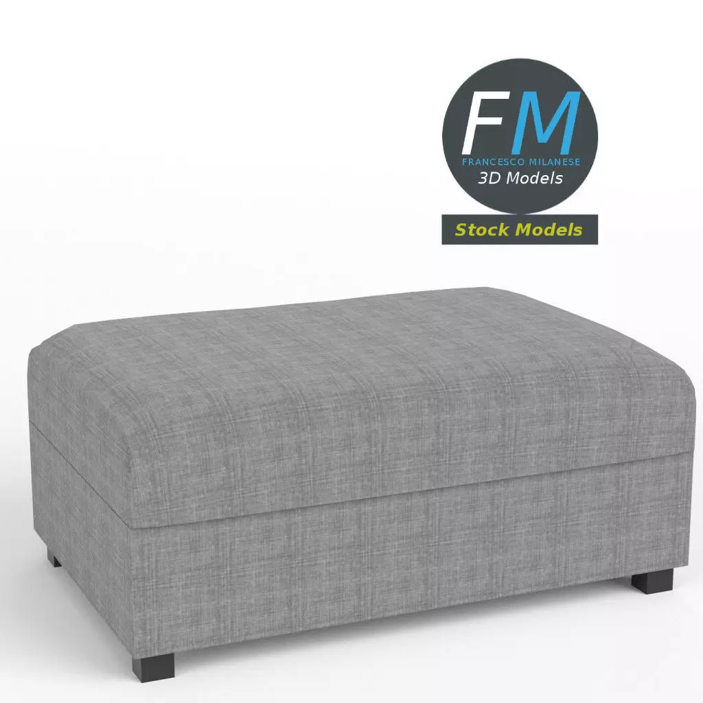 Upholstered footstool 3D Model. Production-ready 3D Model, with PBR materials, textures, non overlapping UV Layout map provided in the package.