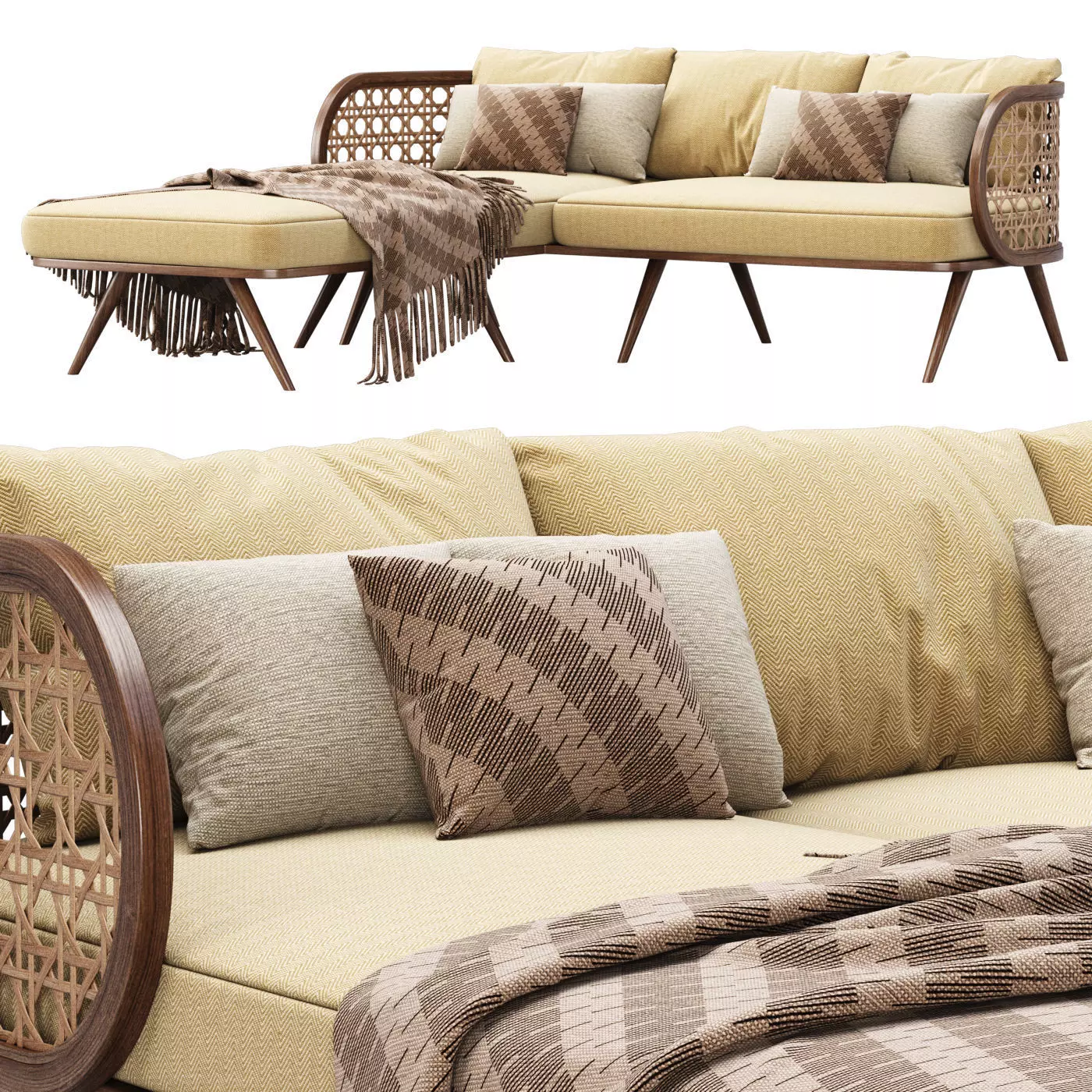Victoria wooden rattan sofa PS80 with chaise lounge 3D model