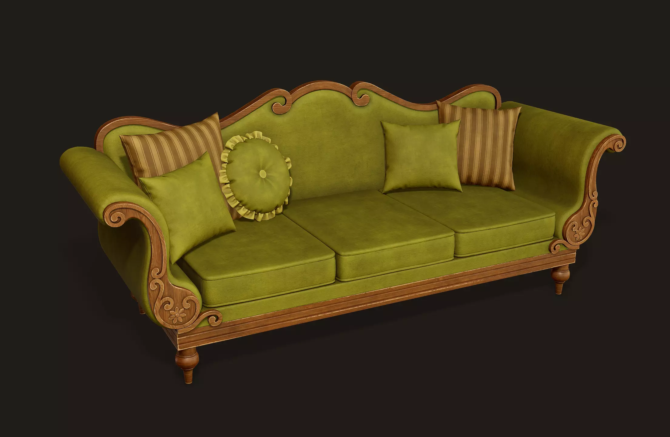 Vintage Sofa with Cushions is a lowpoly game ready model with unwrapped UVs and PBR textures.