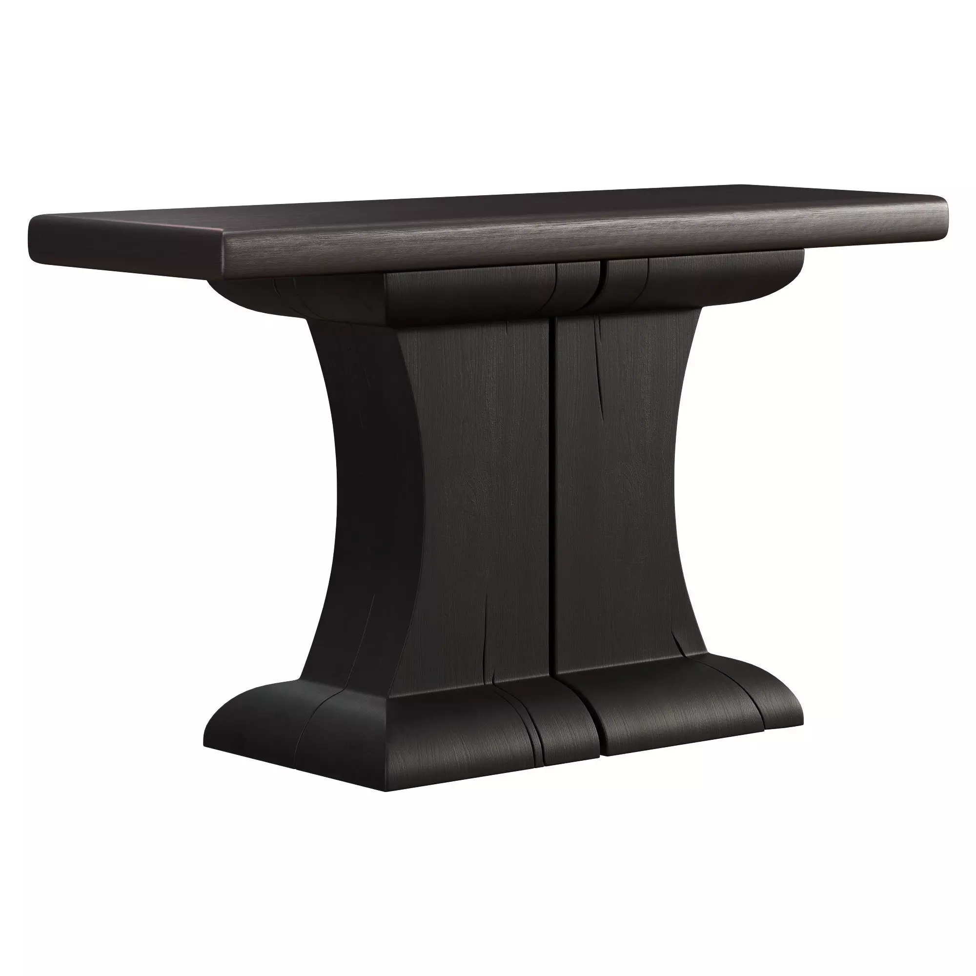 Organic forms provide the bold foundation for a robust console table softened by graceful curves and rounded edges. Boasting a Spanish Cedar top in a rich dark brown stained finish and deep dyed pine base, its two tones further differentiate the structural nature of this commanding piece. Hand carved by artisans, it imbues a distinctive presence, with cracks inherent to the woods enhancing their pedigree. Made in New Mexico, USADimensions:18 x 48 x 30 H inches Saved in Corona Legacy MTL for older versions of Corona Render