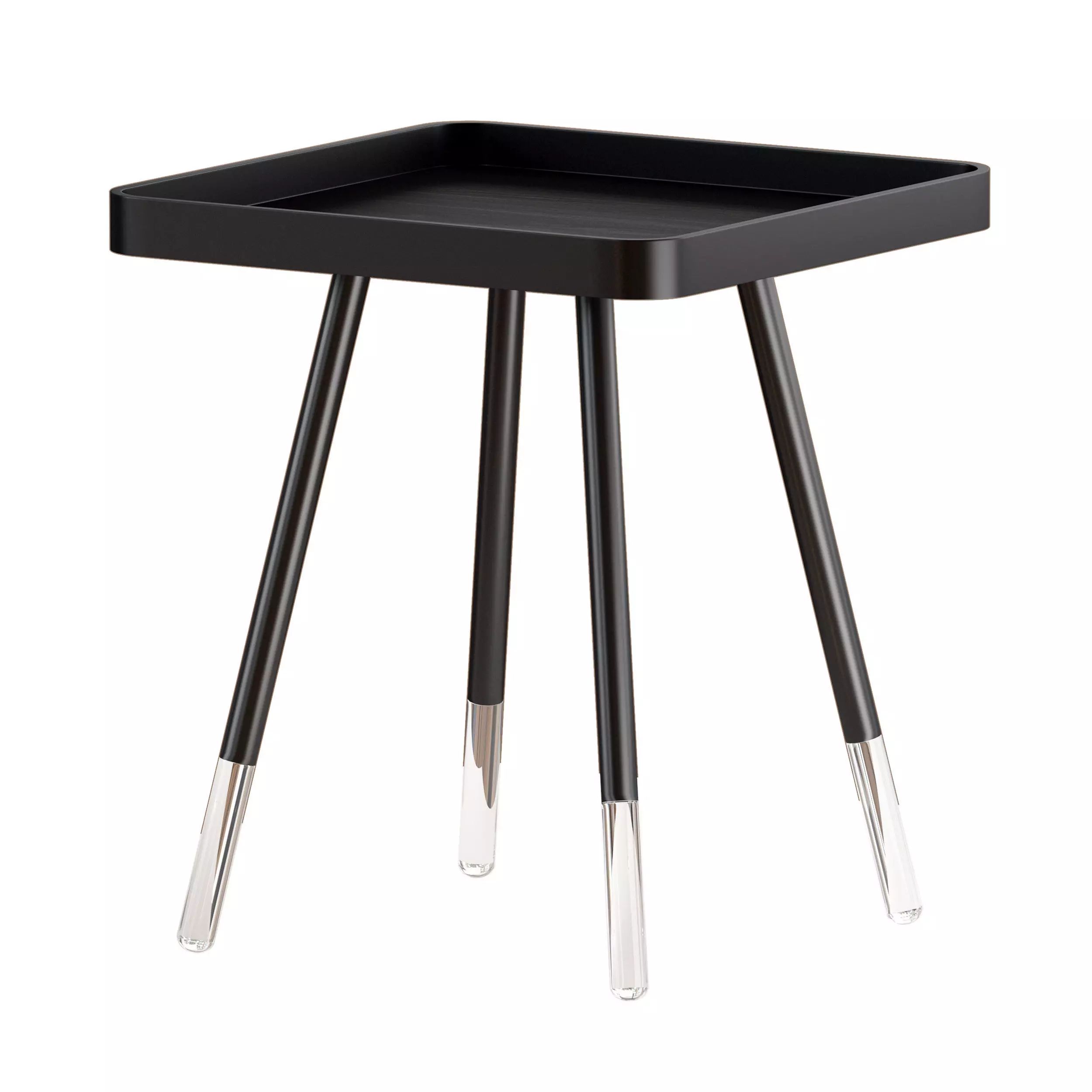 Small black table BLAINE END TABLE made by ADESSO. It combines glossy and matte wood, the tips of the legs are made of transparent acrylic, making the table light.