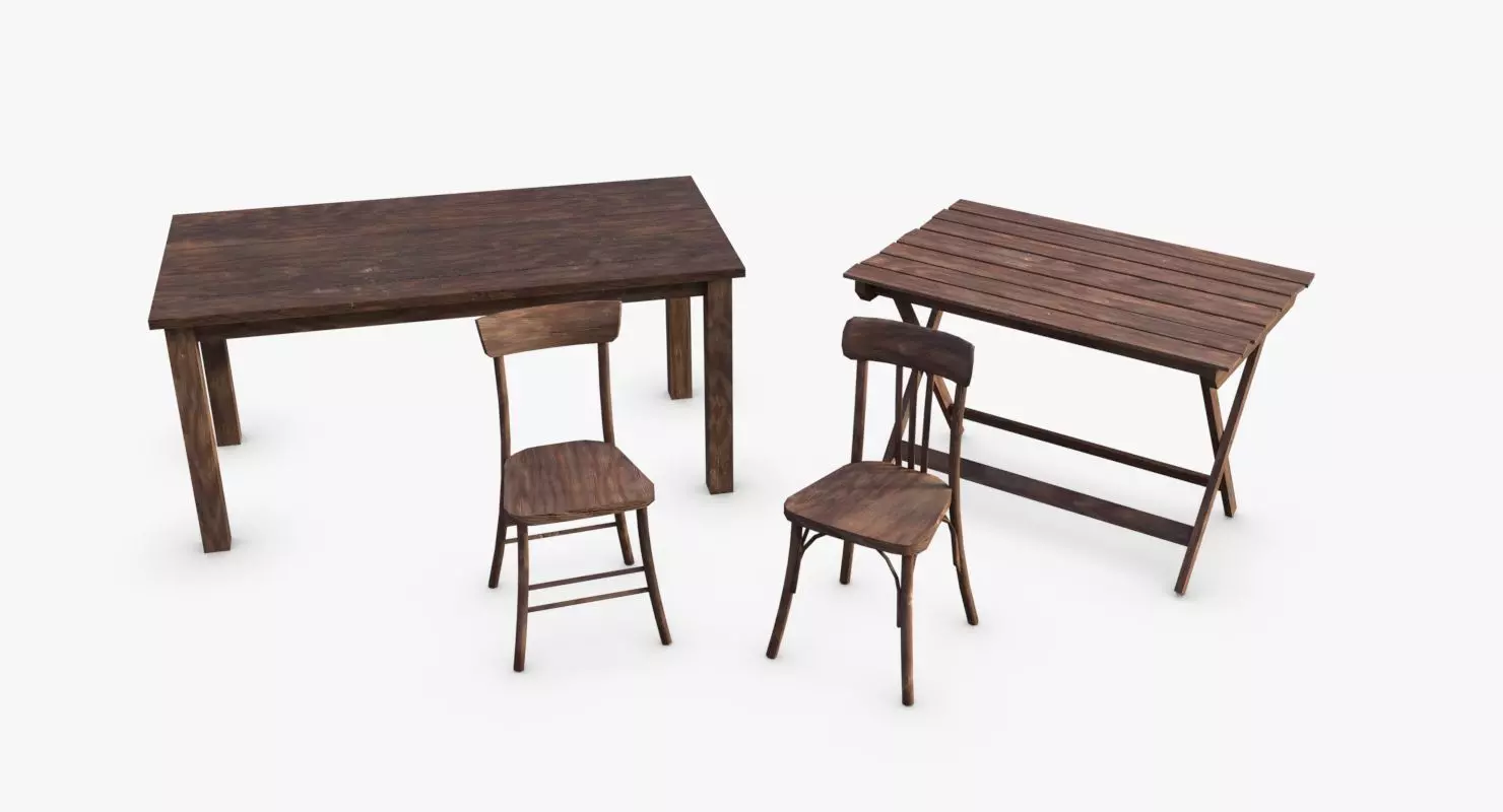Models of some WWII bunker's furnitures. This pack asset includes 2 tables and 2 chairs. This modular asset is a small kitbash for WWII indoor furnitures for german bunkers of the AtlantikWall.