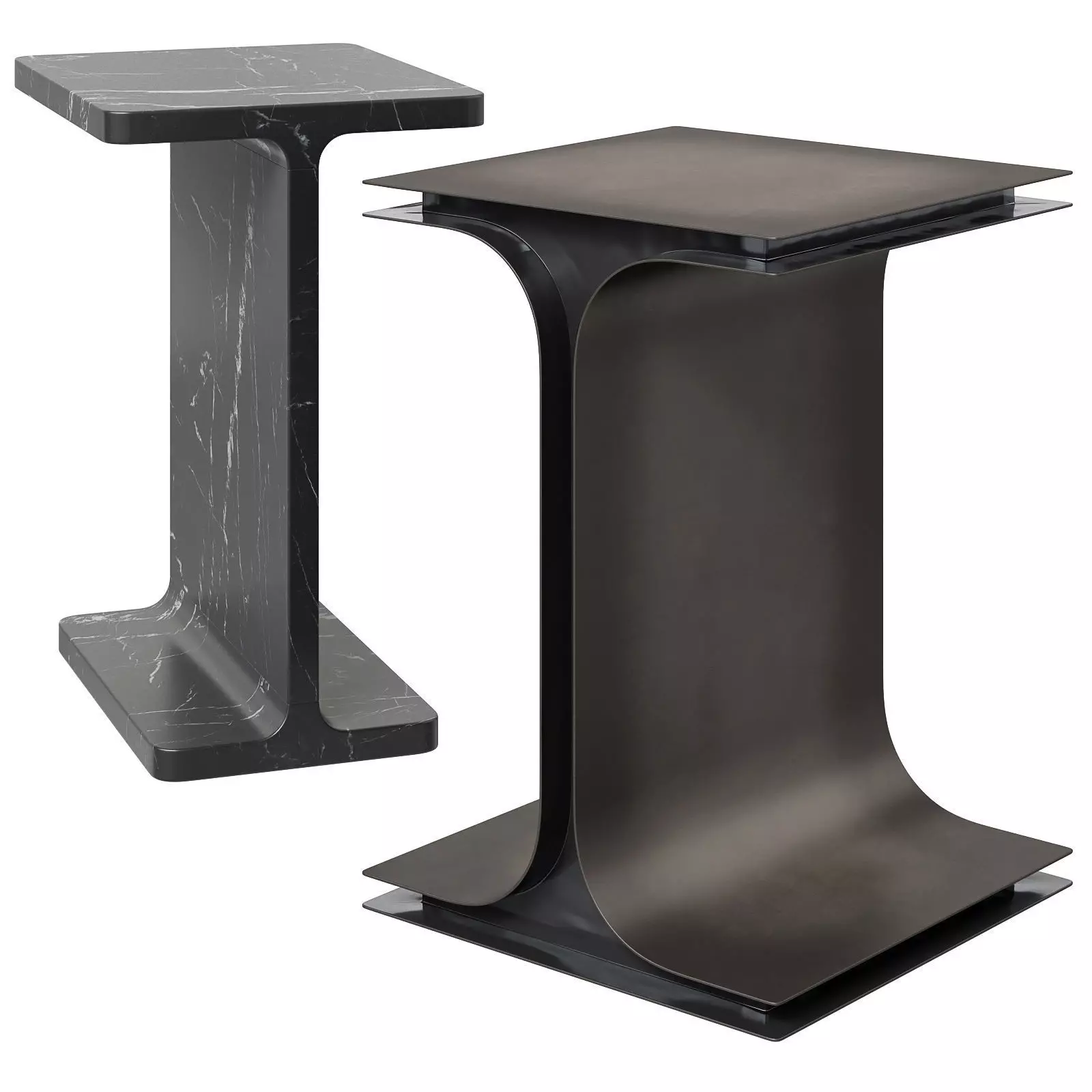 I Beam Black Marble Side Table. 15Wx12Dx20"Hhttps://www.cb2.com/i-beam-black-marble-side-table/s322851A reference to modern architecture and industrial design. Pieces of honed black marble are cut to shape, joined together and finished by hand to create this versatile side table. Holds books and strong drinks while sitting on a sofa or chair. CB2 exclusive.