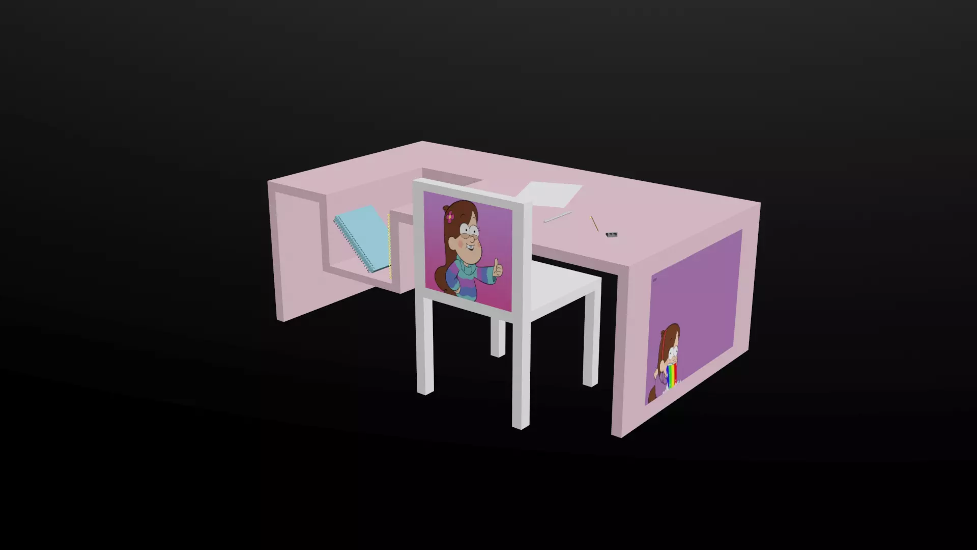 The model's surfaces are mapped to a 2D image, allowing textures to display correctly.