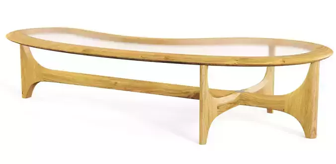 Classic Lane Glass and Walnut Kidney Shaped Coffee Table 3D model