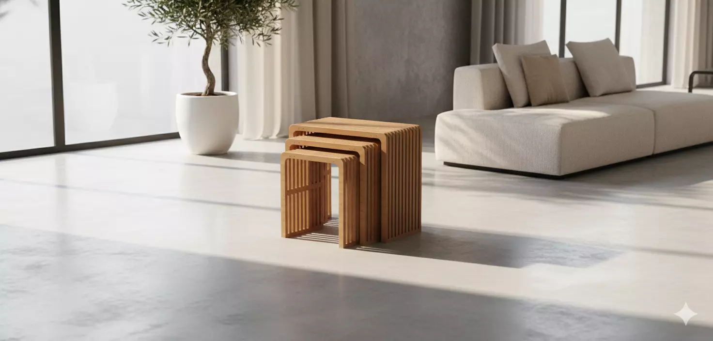 This slatted nesting table set is delivered as a complete CNC-ready digital furniture package designed for accurate manufacturing and workshop production. The download includes SolidWorks part and assembly files, STEP and STL formats, fully dimensioned technical drawings, a BOM list, and a detailed assembly guide, optimized for cutting from 18 mm MDF or plywood. The U-shaped structural design ensures stability while the slatted surface provides a modern parametric aesthetic suitable for contemporary interiors. Files are prepared for direct CNC processing and straightforward glue-based assembly. This listing contains digital files only; no physical product is shipped. The design rights remain with the original furniture designer, and this package provides production and assembly guidance for manufacturing purposes.