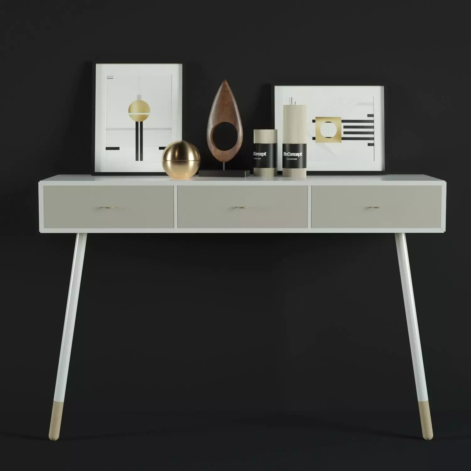 The model has material settings that define how surfaces look (color, shine, transparency, etc.).