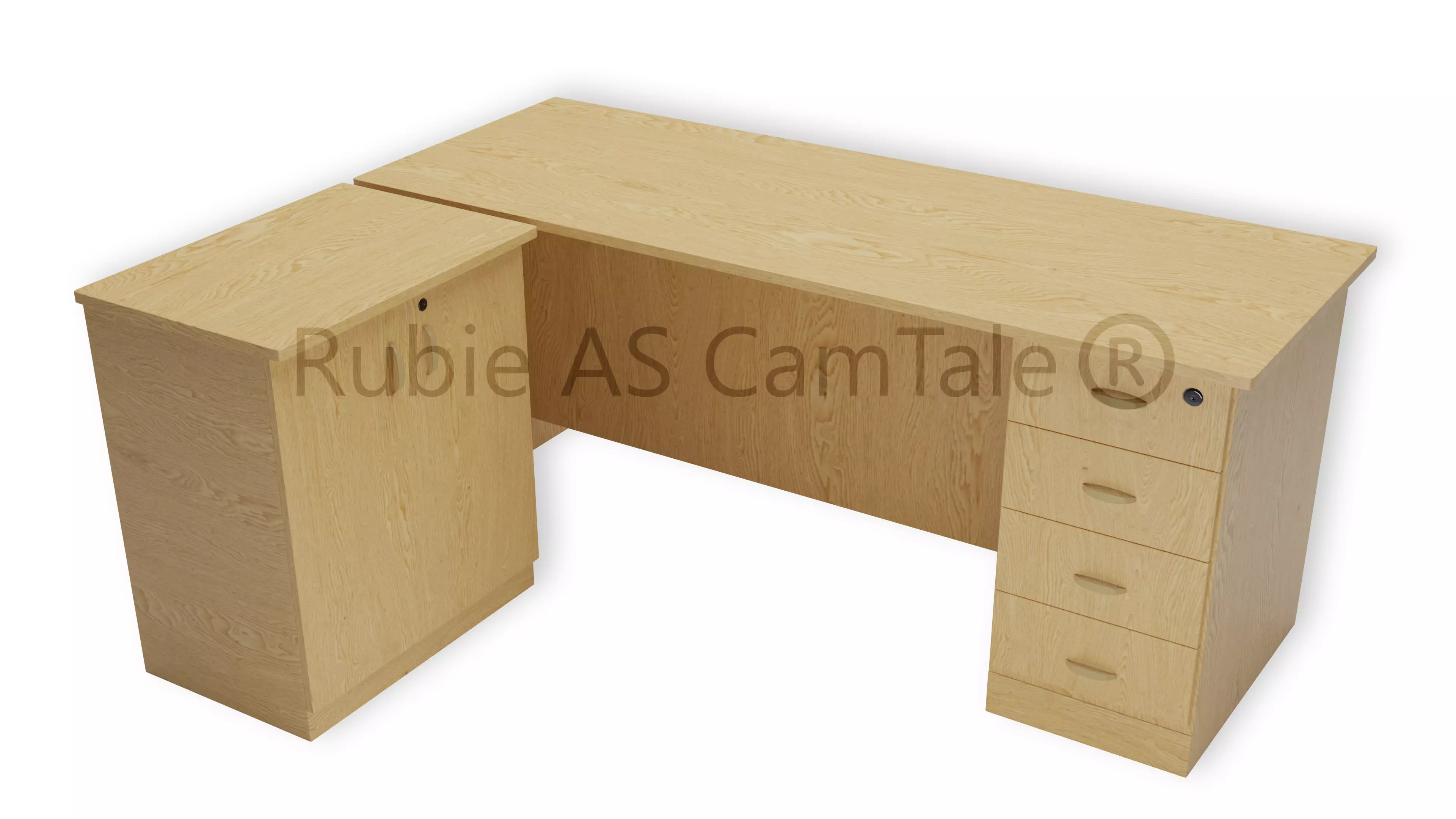 This is my new L-shaped office desk - isn't it great? It provides me with such a spacious work area. The desktop is made of solid oak wood with a warm, natural finish that looks beautiful. Running my hands along the smooth surface, I can feel the fine wood grain texture.