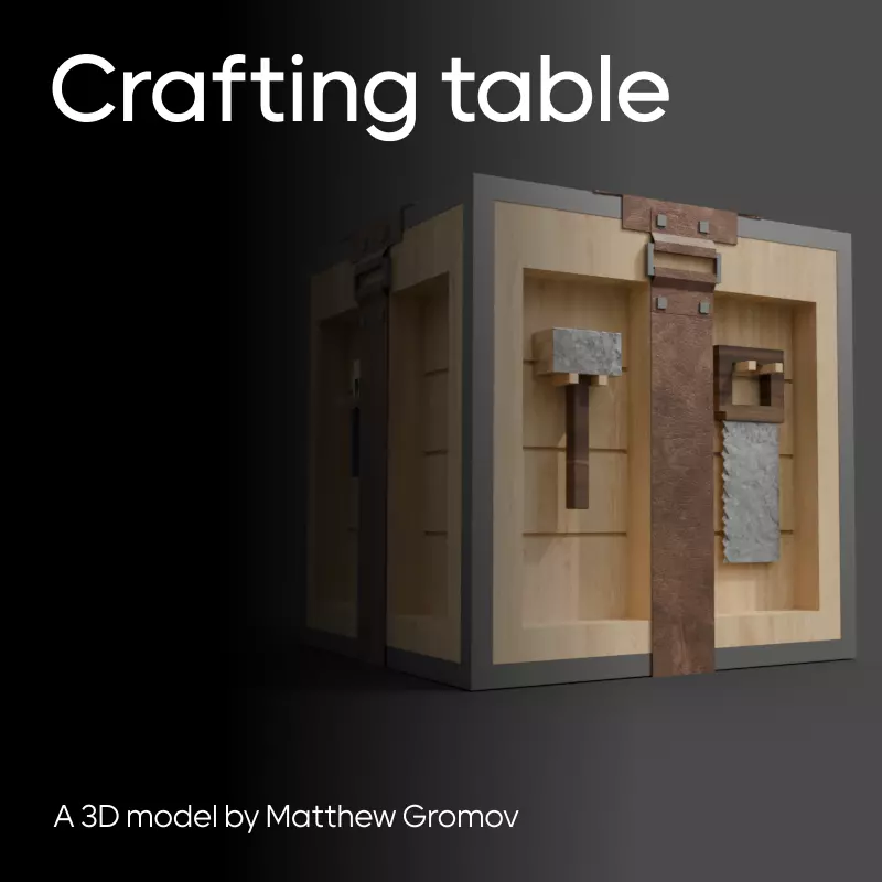 Here is the 3D model of the crafting table, a block from the Minecraft franchise that is created and owned by the Swedish company Mojang. This is a realistic design for the block, inspired by the original 2009 game, the 3D resource packs made by the community and the block's appearance in the Minecraft film series, produced by Mojang and Warner Bros.