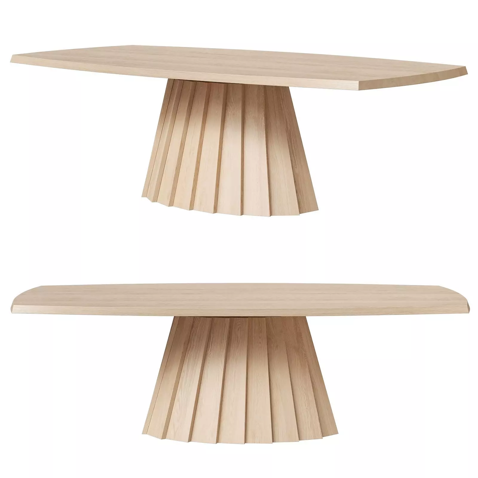 The model is assembled for subdivision. When using import formats, please apply MeshSmoth/TurboSmoth with 2-3 iterations.https://delaespada.com/products/177-orion-dining-table-timber-base/Orion, named after the most recognizable constellation in the night sky, cleverly explores the concept of repetition with a central leg made from a series of overlapping solid wood slats to form an oval shape. Expressing contemporary art, this table has a sculptural shape imbued with the warmth of solid wood, making any dining room an interesting and spacious gathering place.Dimensions: 234.4*126.4*74.4Hsm