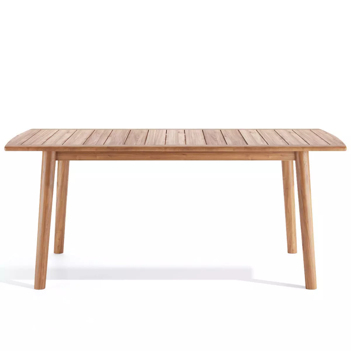 The Modurn Dining table is one of our newest designs in outdoor dining, featuring wide premium teak slats and softly rounded edges. This table has a chic, minimalist elegance and is designed to last.Overall dimensions: W 70.75x D 35.5 x H 29.5"