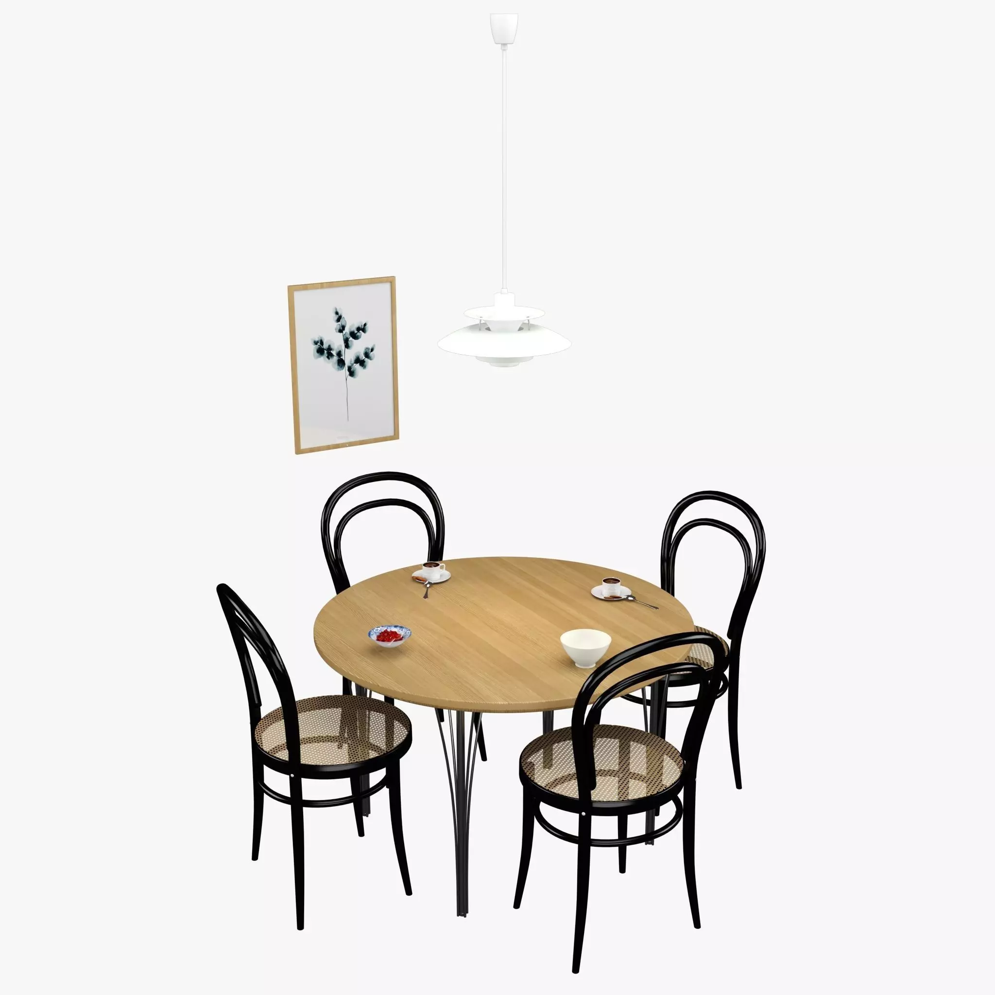 All parts are named and grouped into appropriate selection sets for ease of use. You can reduce the model's overall poly count by approximately 40% by replacing three of the chairs with instances to lighten overhead.