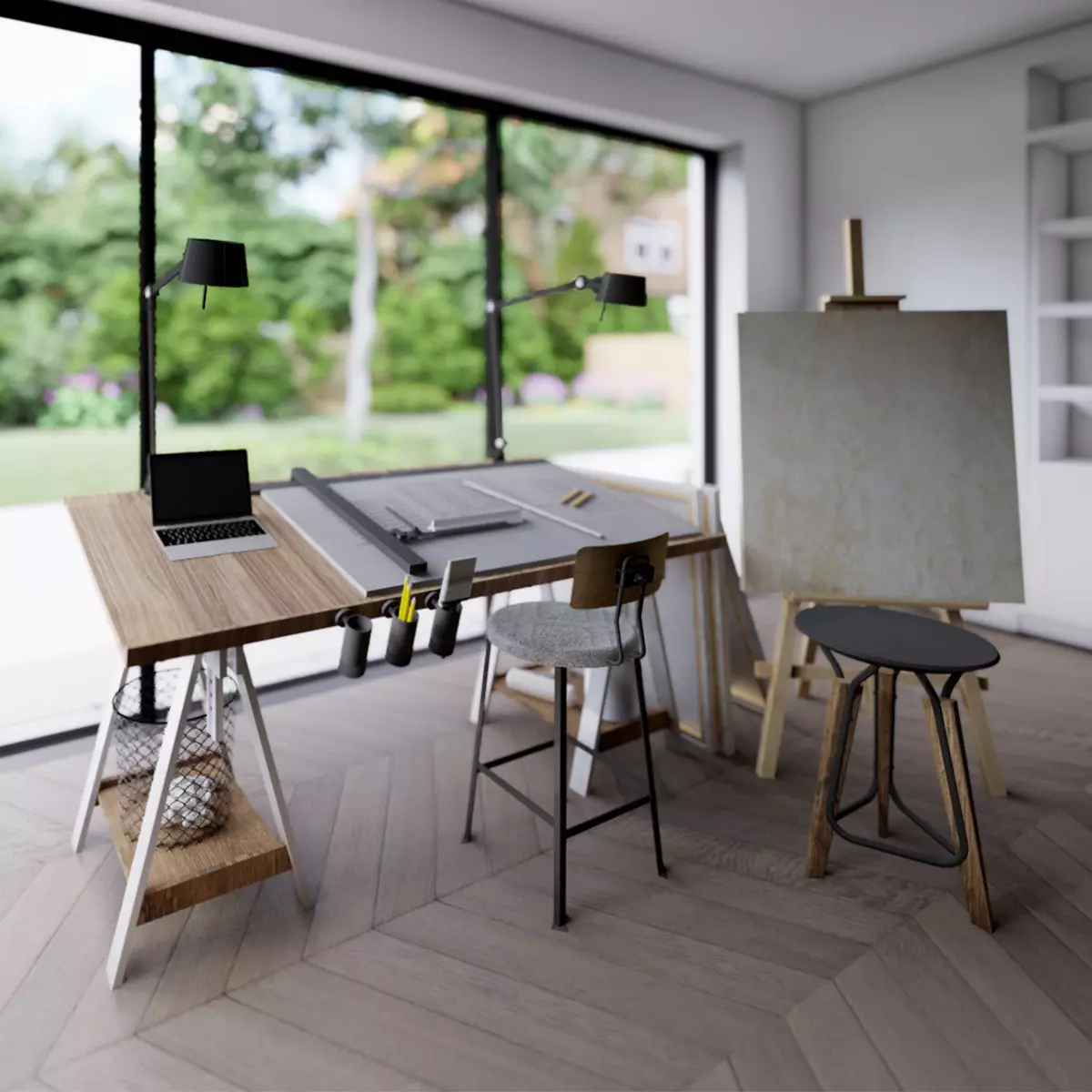 The model has material settings that define how surfaces look (color, shine, transparency, etc.).