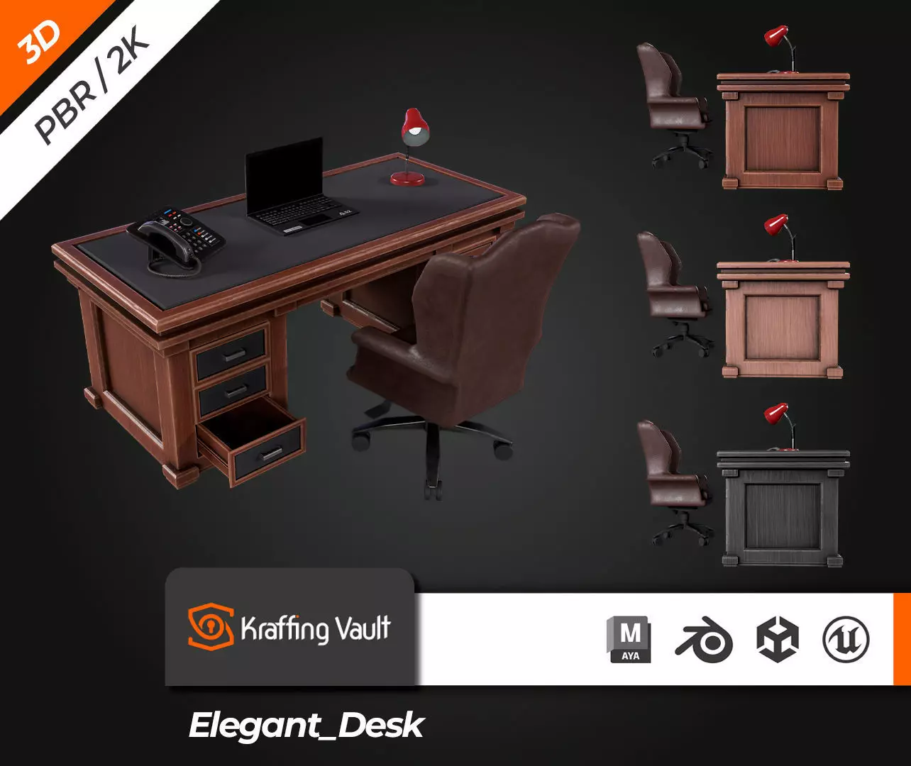 Kraffing presents a 3D modeling Elegant Desk V2. Recreated design so you can use it in personal projects, scenes, videogames and more.