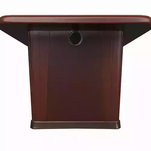 Executive Mahogany Conference Table A sophisticated mahogany conference table featuring a rich polished finish, elegant tapered legs, and a luxurious leather inlaid center perfect for executive boardrooms. The high-detail 3D model showcases four essential perspectives: front view displaying the table's impressive length and refined leather center, back view revealing functional Create a highly detailed 3D model of a vintage brass bank door knocker featuring an ornate lion head design with a prominent ring striker. The model should include the mounting plate with visible attachment screws and display authentic verdigris patina coloring that adds character to the entrance hardware.