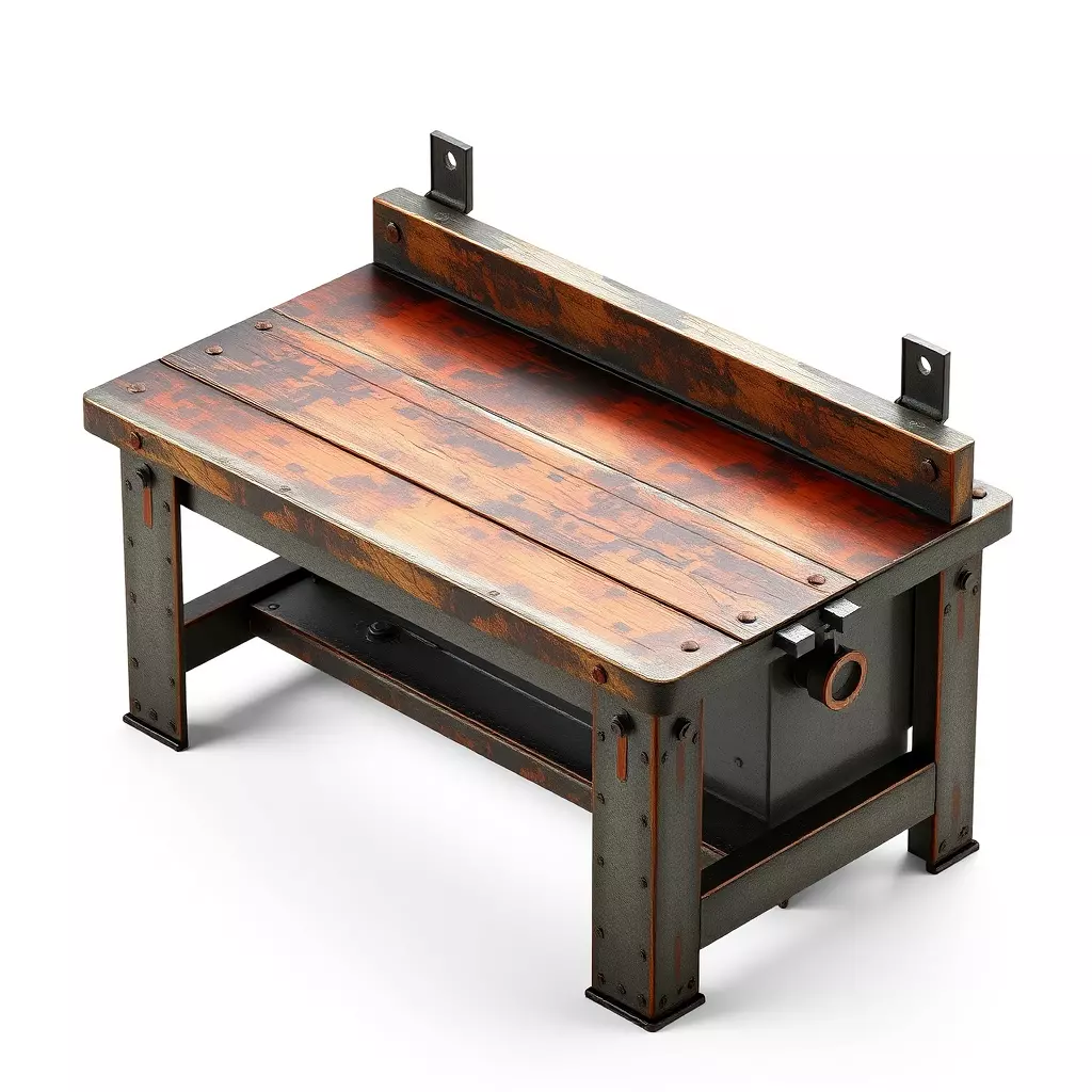 This highly detailed 3D model presents a robust industrial workbench, meticulously crafted with a blend of aged wood and rugged metal components. The design captures a rustic, almost steampunk aesthetic, making it an excellent prop for diverse digital environments. It features rich, weathered wood textures on the tabletop, complete with visible grain and imperfections, contrasted with dark, sturdy metal framing adorned with rivets and subtle signs of wear and tear. A practical lower shelf adds to its functionality and visual interest. This model is ideal for a wide range of applications, including realistic game development, where it can serve as an authentic piece for factory scenes, workshops, or post-apocalyptic settings. It also excels in architectural visualization projects, perfectly complementing industrial-themed interiors, lofts, or commercial spaces. Furthermore, its optimized geometry and detailed PBR textures ensure its suitability for immersive augmented reality (AR) and virtual reality (VR) experiences, providing visual fidelity without compromising performance. Digital artists and animators will find this asset invaluable for creating compelling scene details. The model boasts clean, optimized topology, ensuring smooth performance in real-time applications while maintaining visual integrity. It comes fully UV unwrapped with a comprehensive set of PBR (Physically Based Rendering) textures, guaranteeing realistic material representation under various lighting conditions. Supported file formats typically include GLB, OBJ, FBX, USD, DAE, ABC, PLY, and potentially STL for conceptual 3D printing. This asset is ready to be dropped directly into your scenes, offering a versatile and high-quality addition to your asset library.