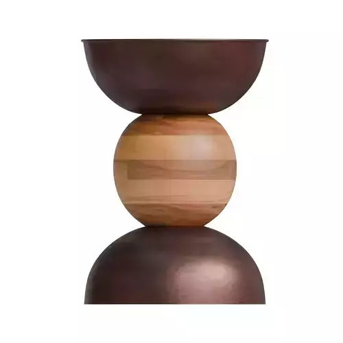 Enhance your interior scenes with this Iron & Mango Wood Round Accent Table 3D model, a striking blend of natural wood warmth and bold industrial character. The design features a sculptural stacked silhouette, combining rich dark iron elements with a contrasting mango wood centerpiece for a refined yet contemporary look.