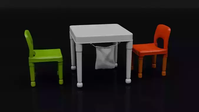 Kids Study Table Low-poly 3D model
