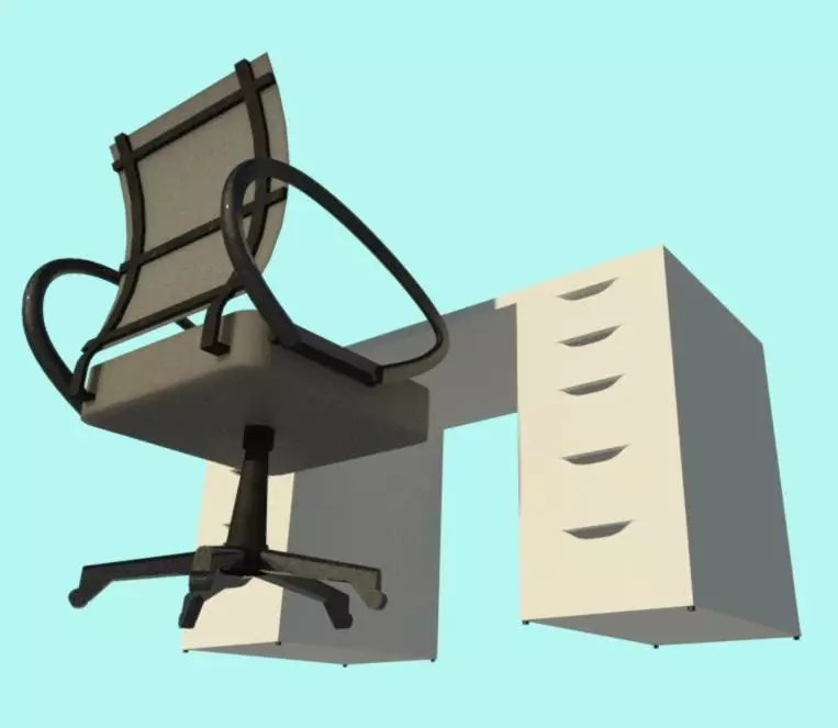 The model has material settings that define how surfaces look (color, shine, transparency, etc.).