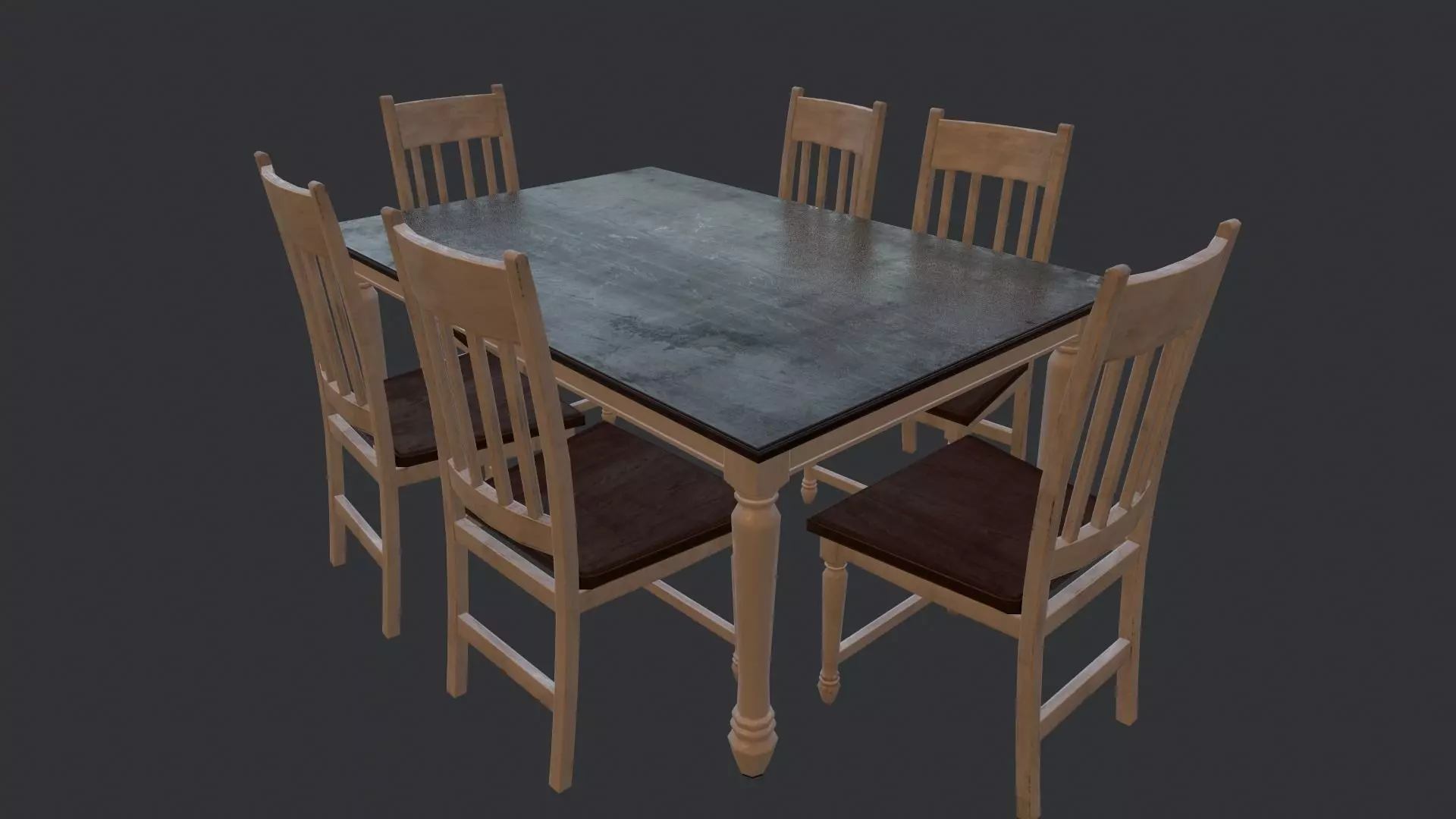 Low Poly Table dining and chairs Low-poly 3D model